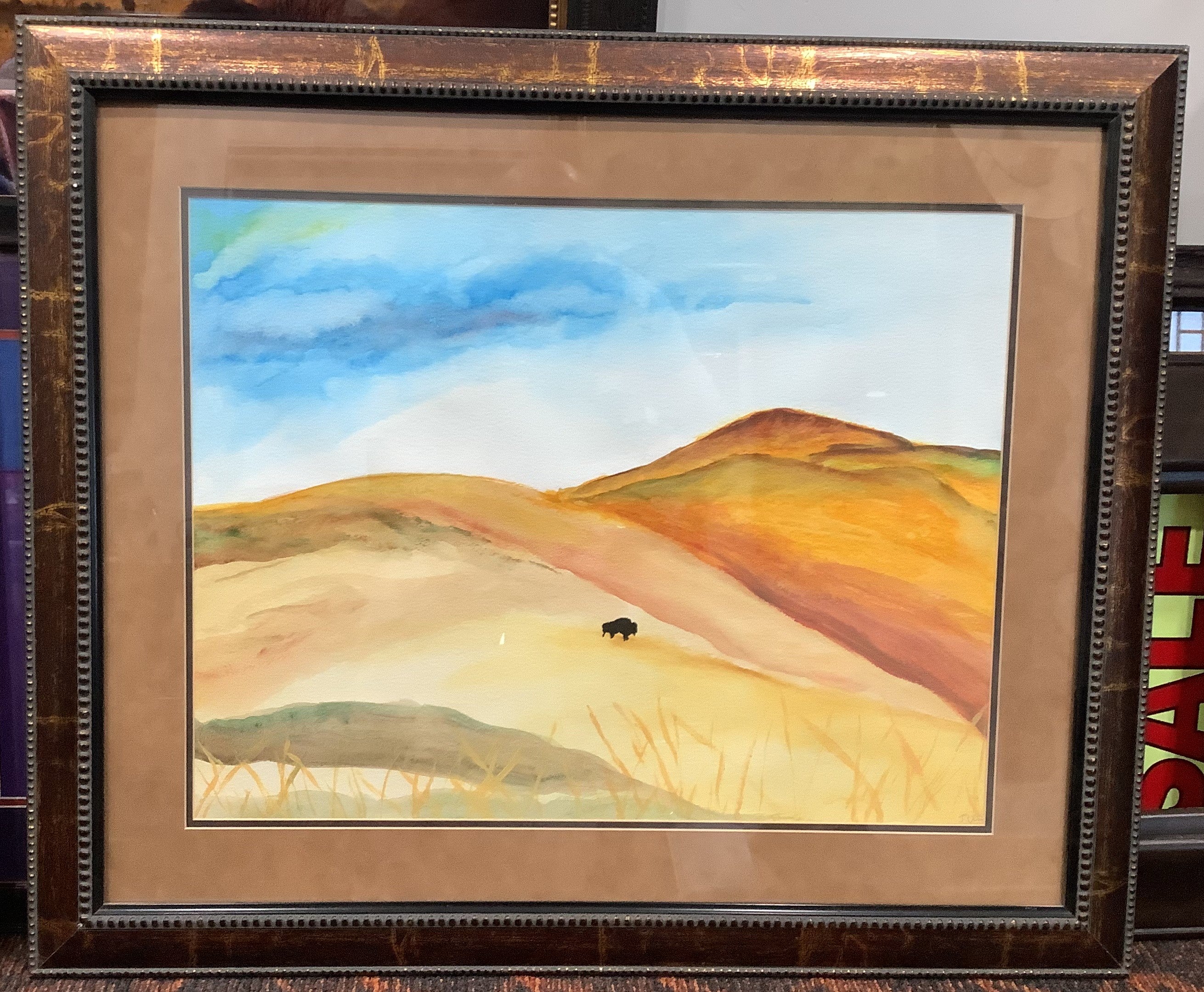 The bison itself is a bit crude ... almost like an ink stamp in this otherwise beautifully colorful piece.