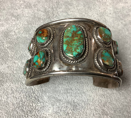 Old, Old Sterling and Turquoise Nugget Cuff.