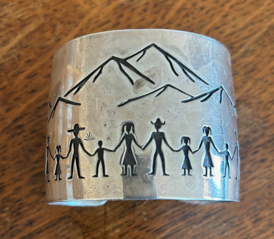 Sterling Silver Story Teller Cuff - Mountains, children, women and men