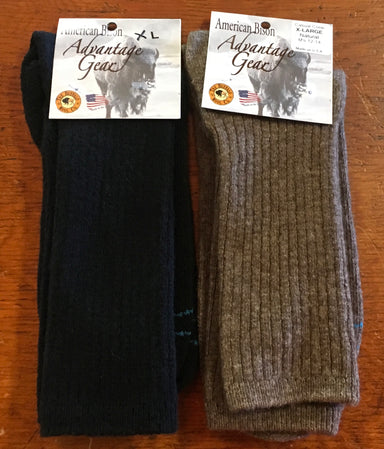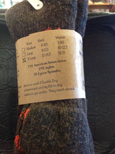 We harvest the bison fiber, get it cleaned, separated, and spun into yarn. That yarn is what we send to our various sock knitters. It is made with the percentages - like the 90% bison - 10% nylon or the 85% bison - 15% nylon.