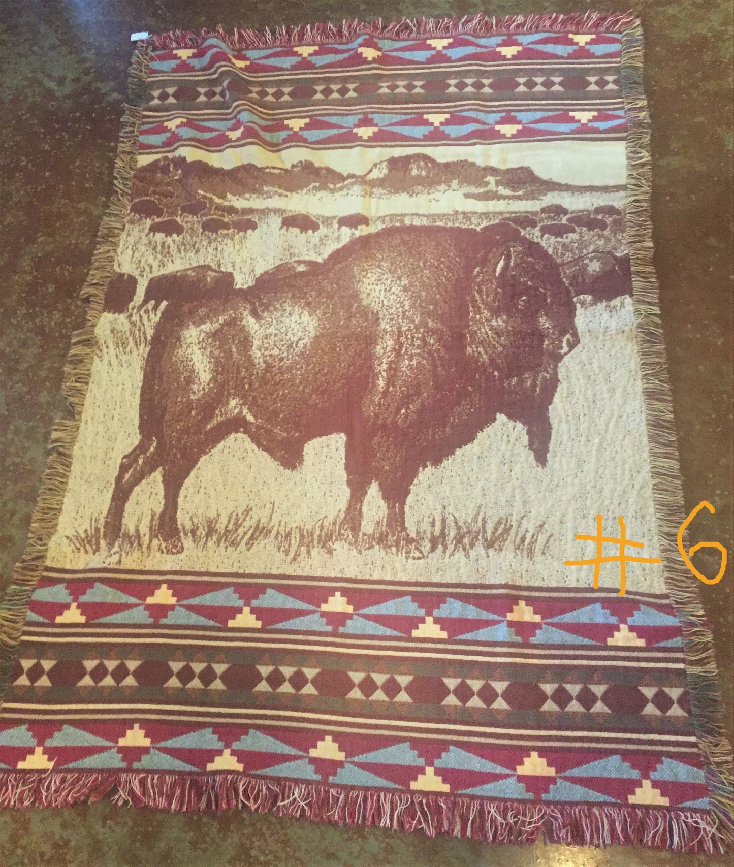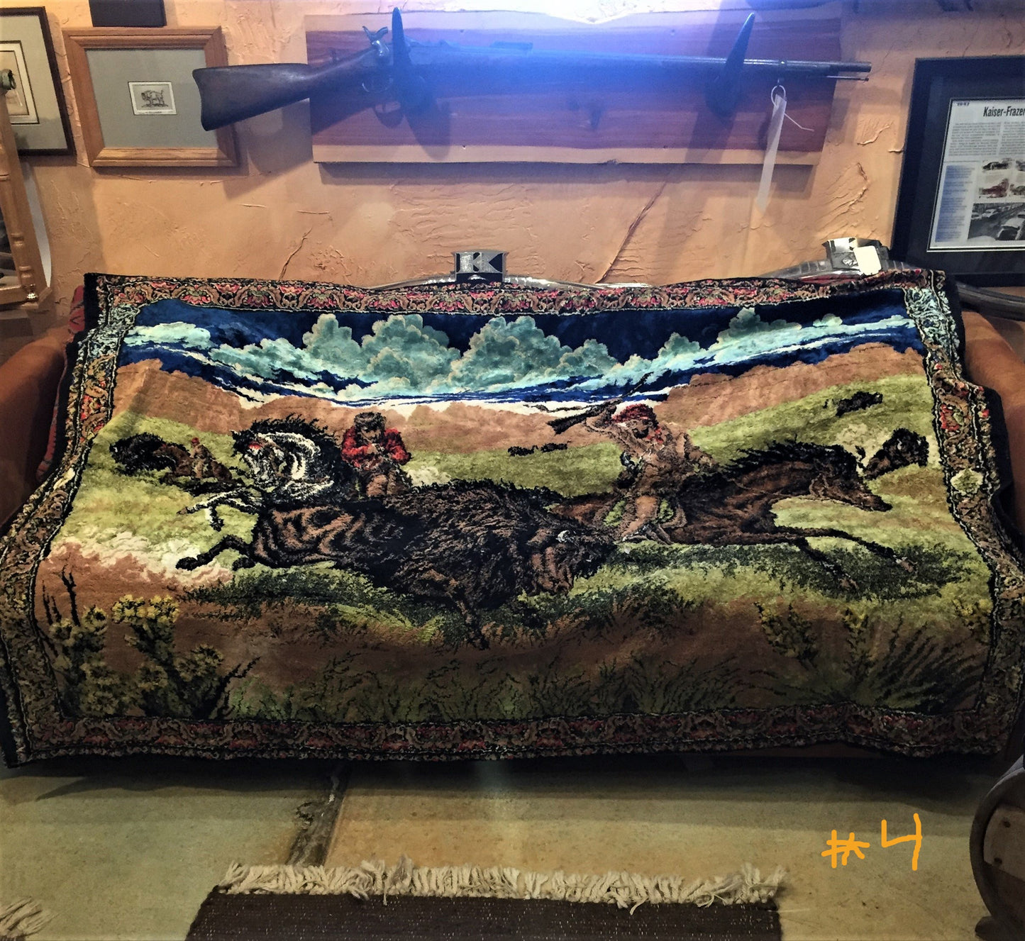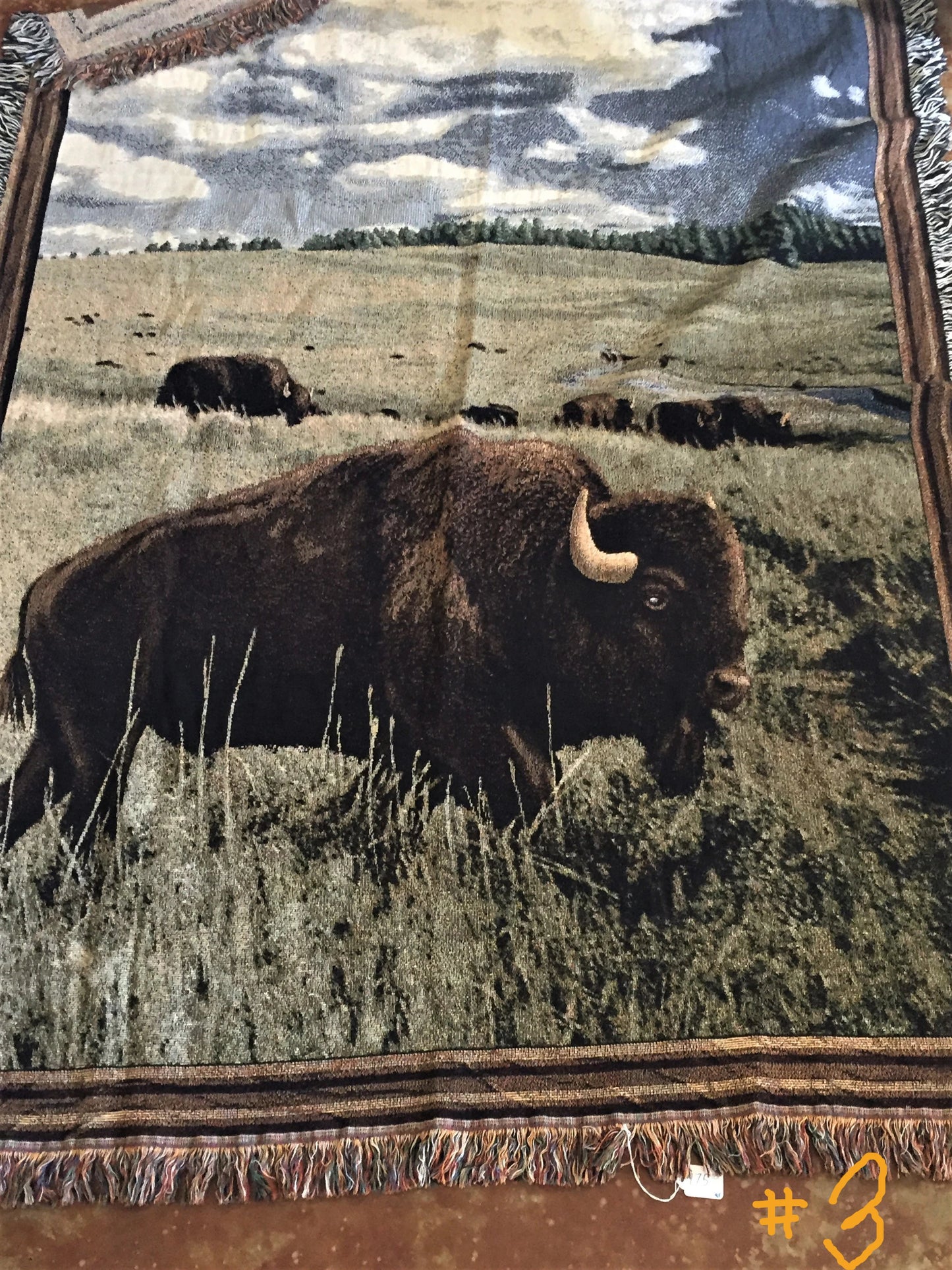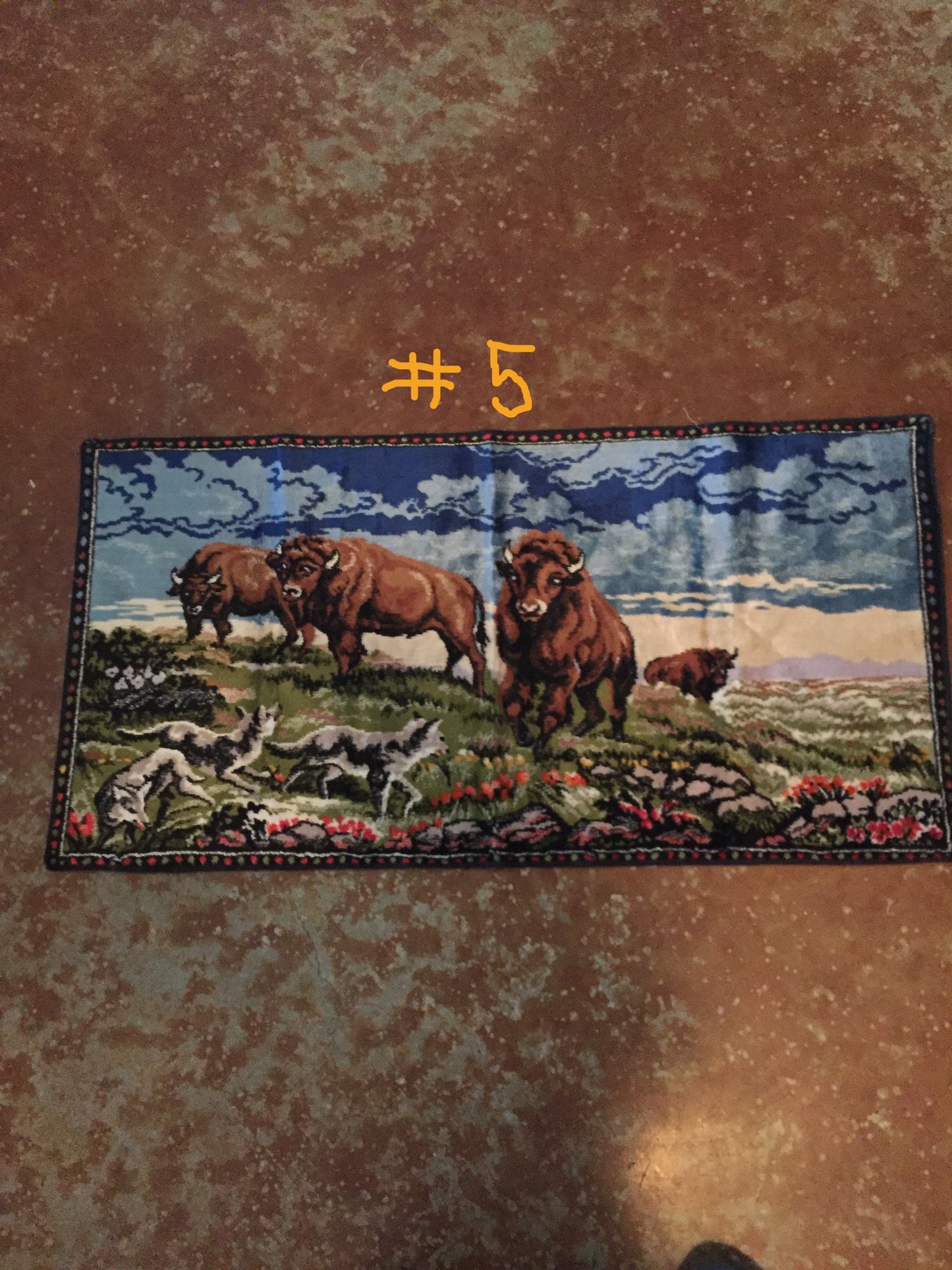 We've acquired several bison related tapestries over the past several years.  We usually just have one or two in the store, but recently the number has grown.  Fifty years ago, these were a lot more common, for wall decoration, over the back of a couch or chair and even as a small throw rug.  Just thought some of you might like to see these ... or bring them home.