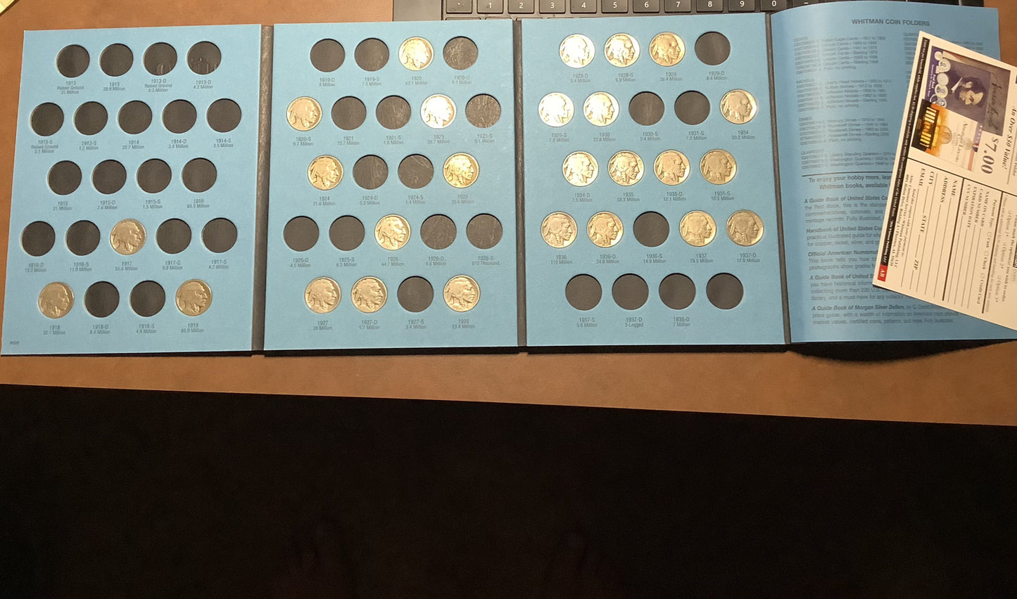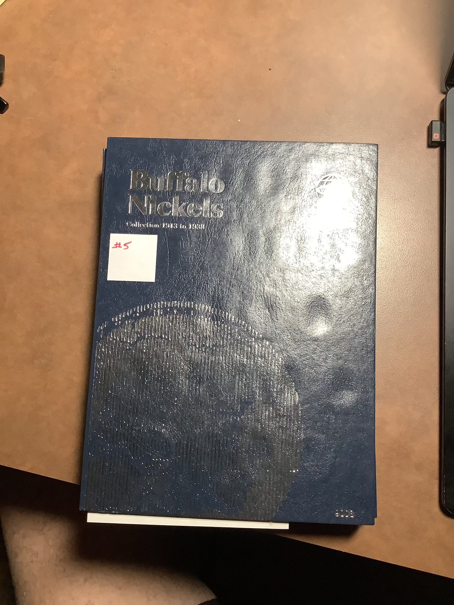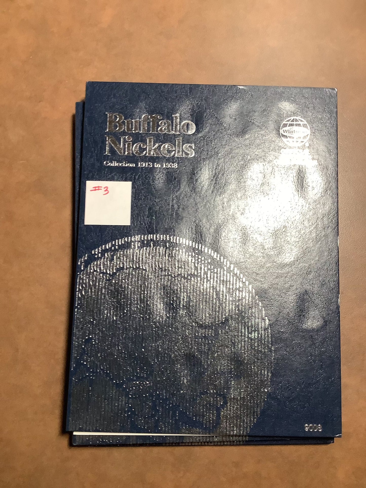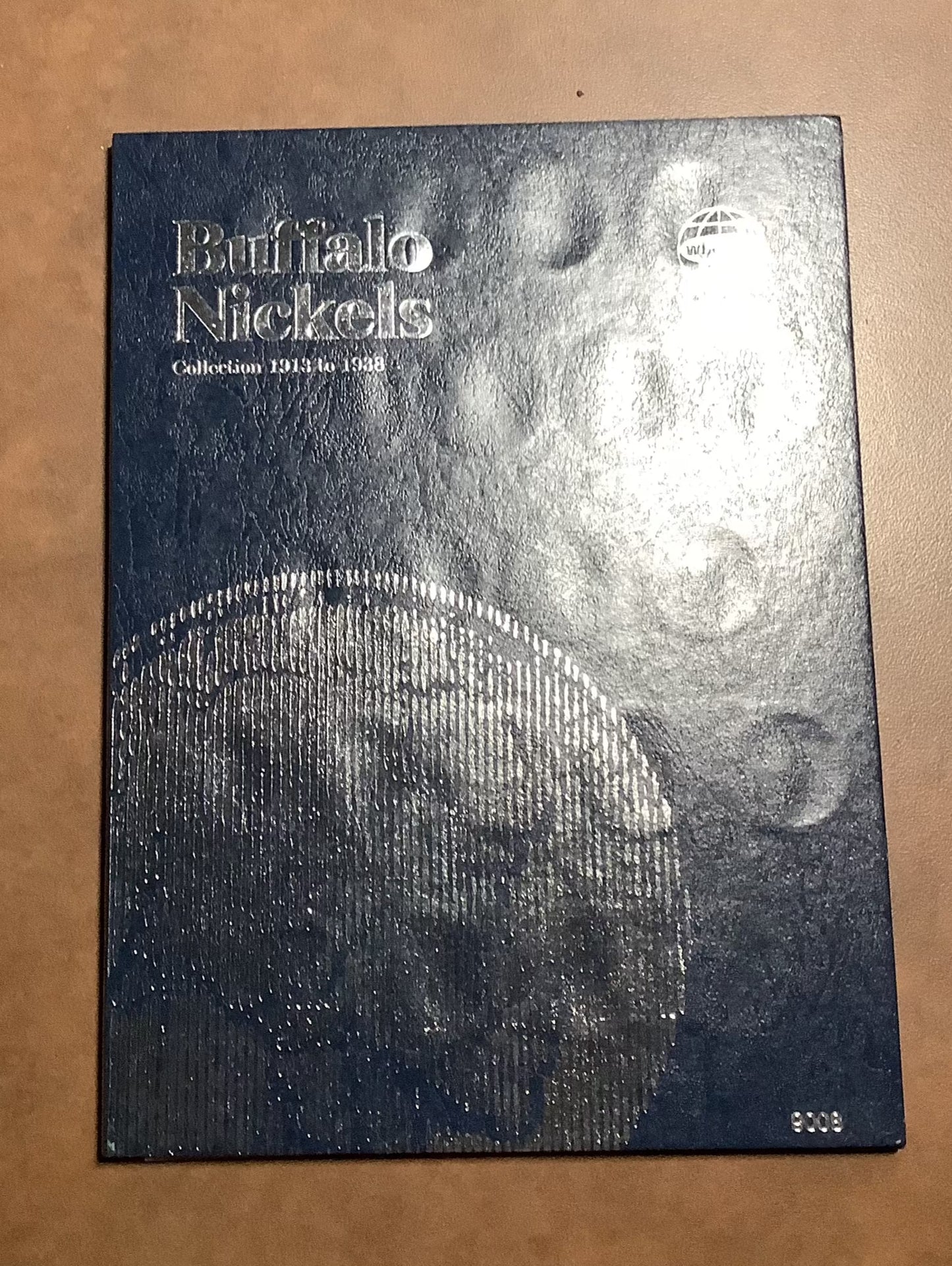 These are "modern" Whitman coin folders each with at least 25 (and no more than 26) "full date" .... readable date ... Buffalo/Indian Head nickels. Nice starter folders and a great project to try and collect them all. We got all five from one coin dealer we use.