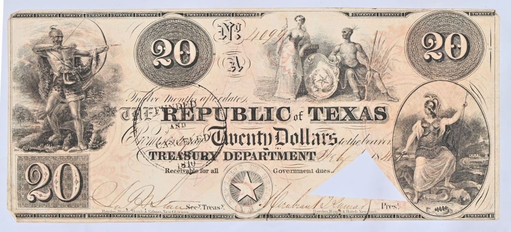 Republic of Texas - Mirabeau Lamar Signed $20 Note