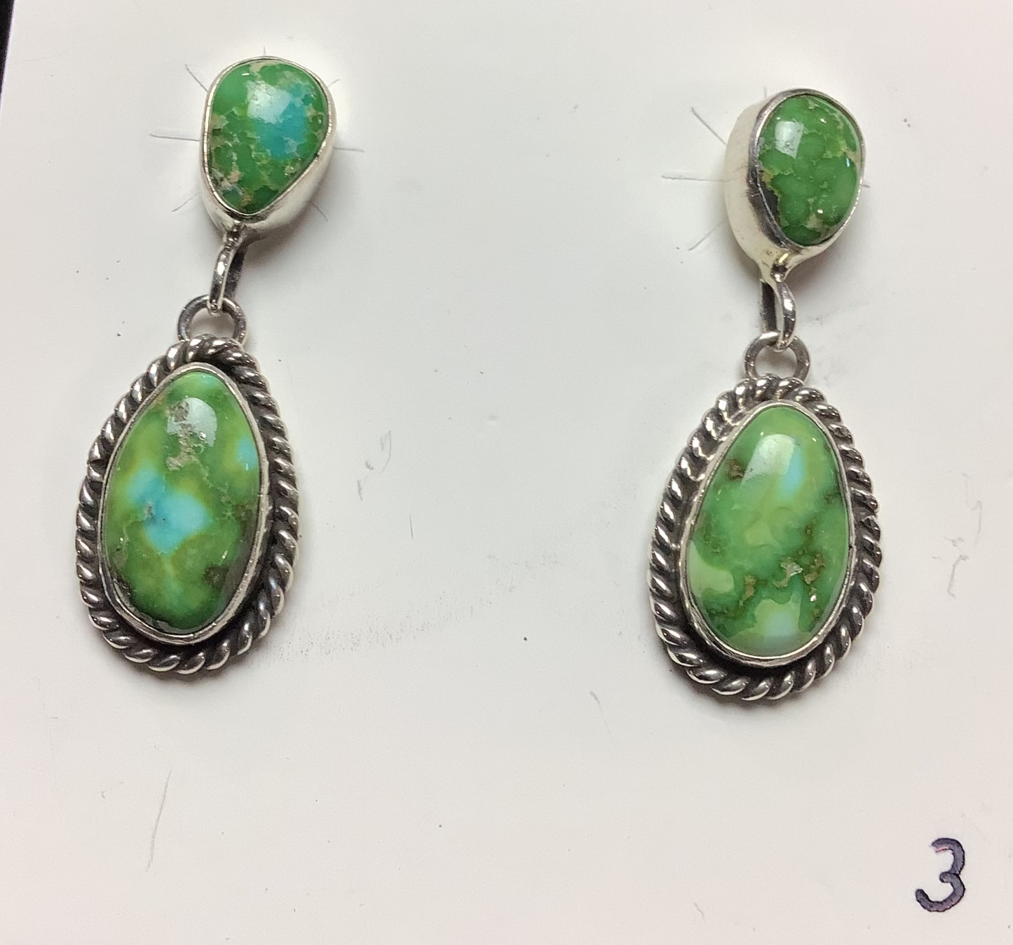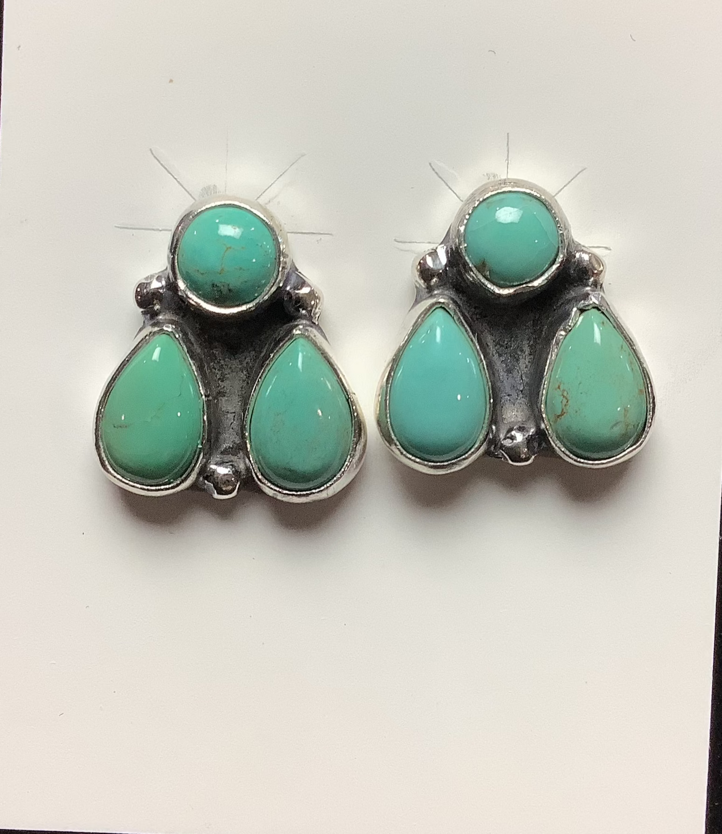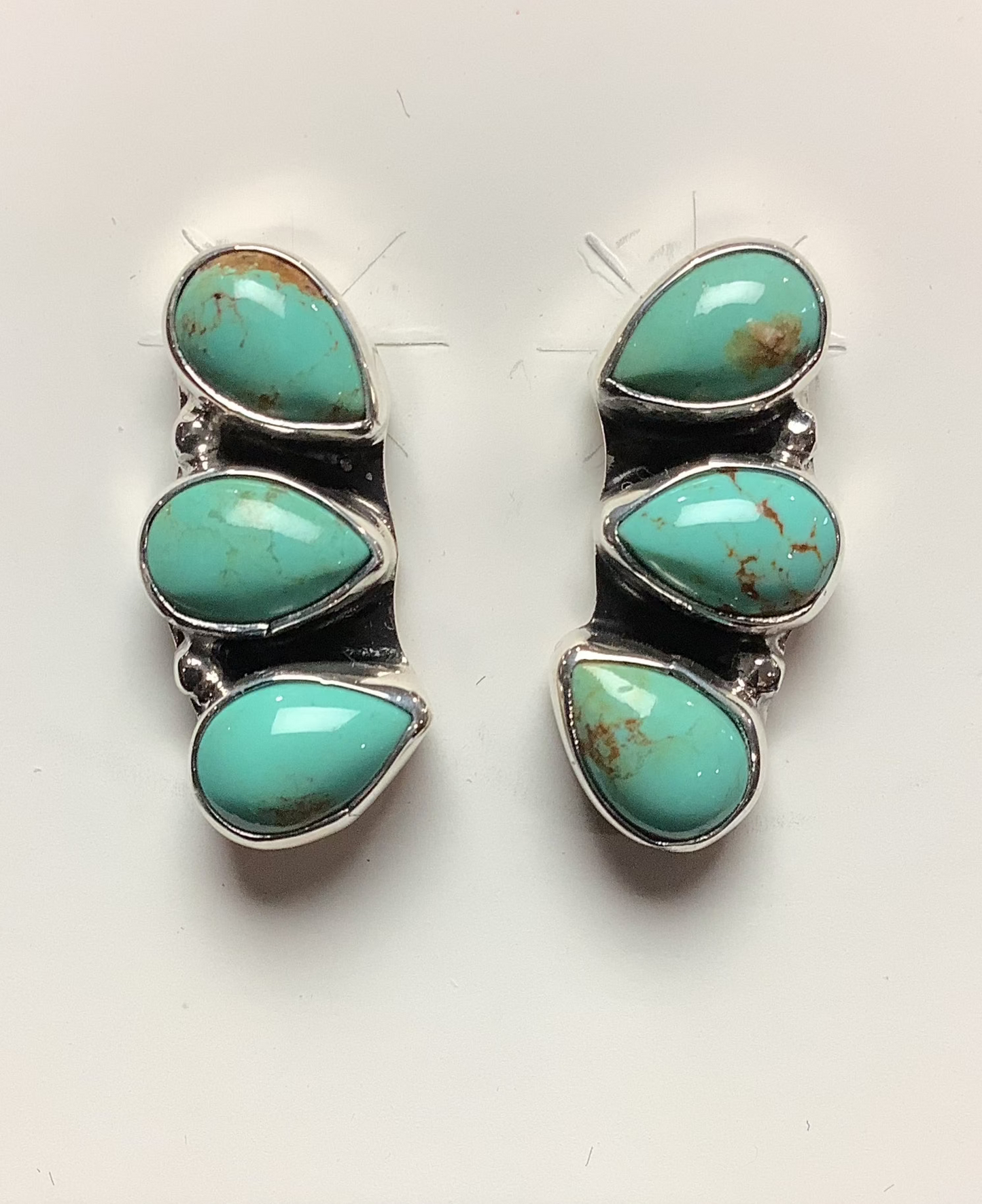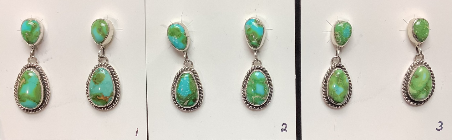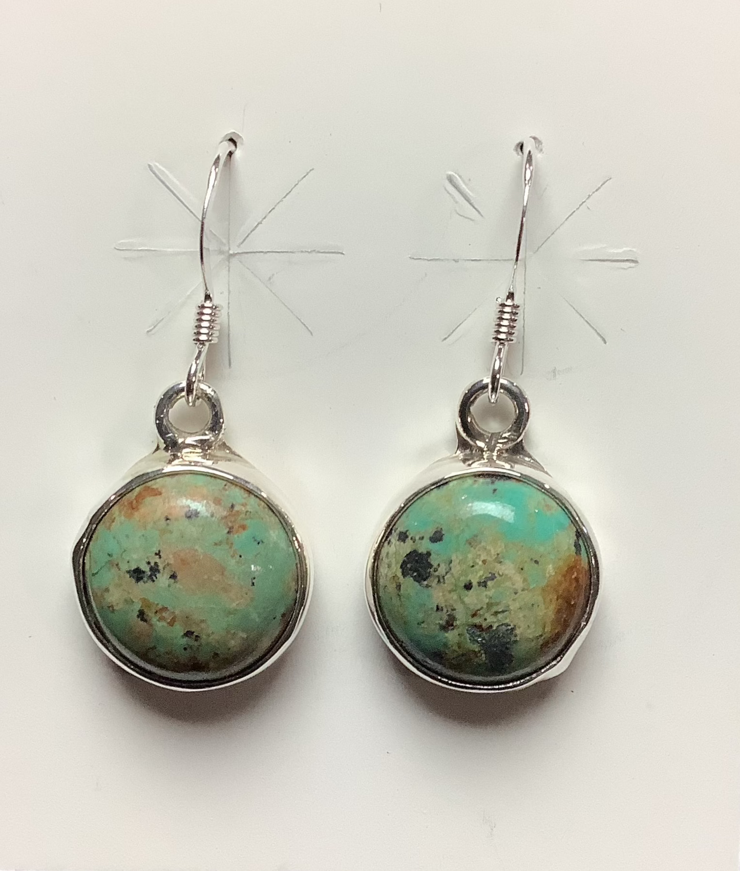 One of my clear favorite Turquoise variations. Sonoran Gold is a bit more subtle that Kingman or Sleeping Beauty. In a variety of sizes and shapes, with both posts or French hook fasteners. A beautiful array of stones and shapes. All set with sterling silver posts, hooks and sterling silver settings.