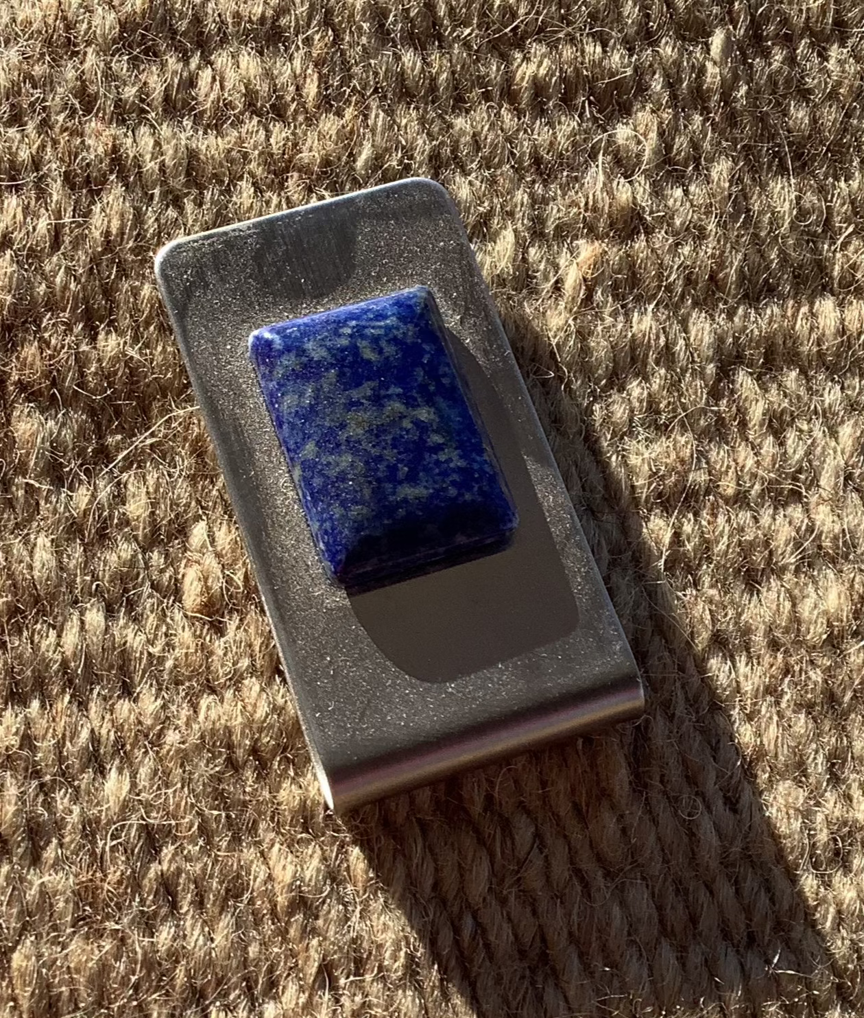 Tough as nails stainless steel money clips, simply decorated with a single semi-precious gemstone. Easy to carry; easy to identify as these are hand made and all one-of-a-kind.