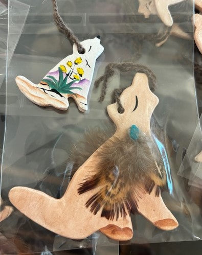Sets of 6 Terra Cotta clay hand cast/hand painted Bison and Western Themed Christmas Ornaments