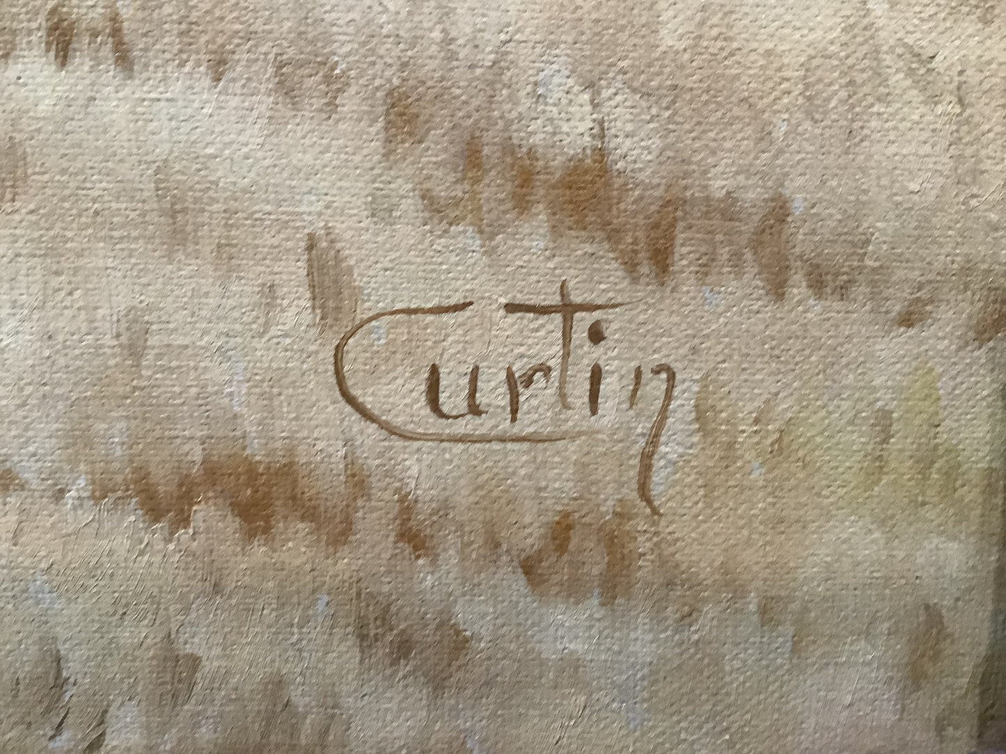 His works sell for anything from a few hundred to over $12,000. (6 pieces currently on Ebay from $600 to $2200). This piece is one of his medium sized - at 40" x 26" including frame. Curtin's works are recognized and collectable. This is a steal at $250, but it is time. Jump in and help yourself!!