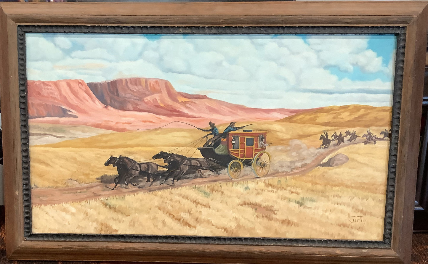 The Chase - Stagecoach and pursuers - Oil on Canvas; circa 1950ish