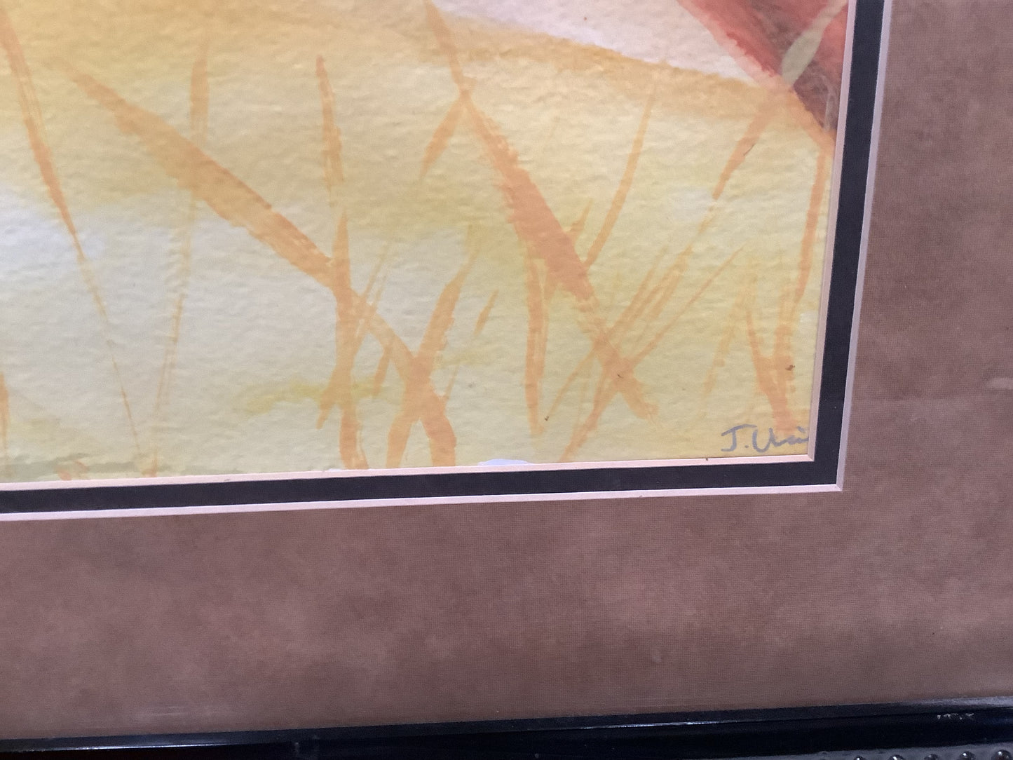 And the colors; rich and deep for a watercolor. The frame itself was more that I am asking for the whole ... and it is a great framing job; this by the shop I used before I moved to Goodnight (Dixie's Frame Shop in Hico, Tx.) This piece I have had for over 25 years ... and very much enjoyed it.