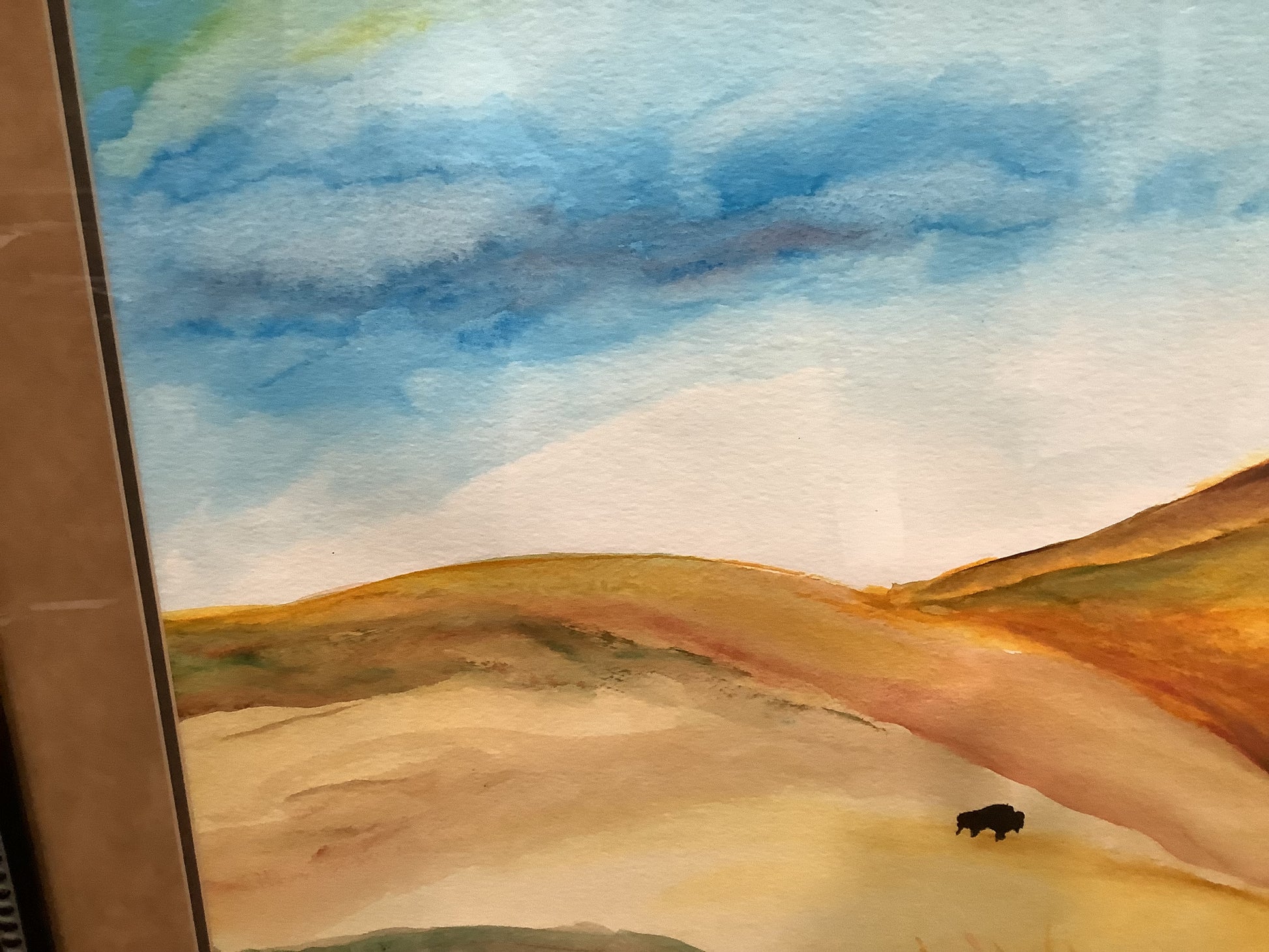 The bison itself is a bit crude ... almost like an ink stamp in this otherwise beautifully colorful piece.