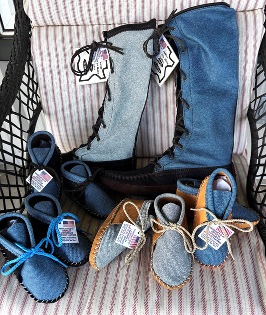 Quality American made moccasins for the whole family. Our American bison leather and Footskin's craftsmanship