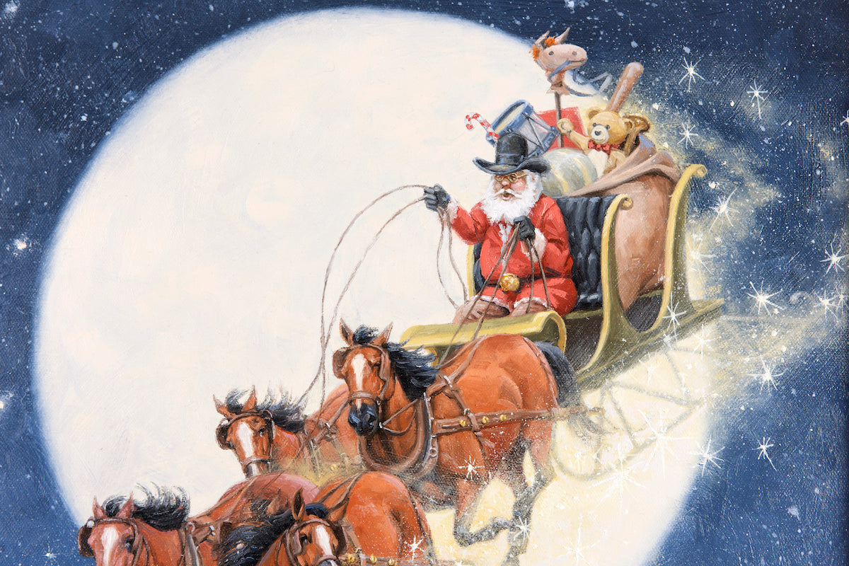 “Kickin’ Up Stardust” - Jack Sorenson’s quote: “This was my 82nd Christmas painting and the first time I’ve ever painted flying horses.”