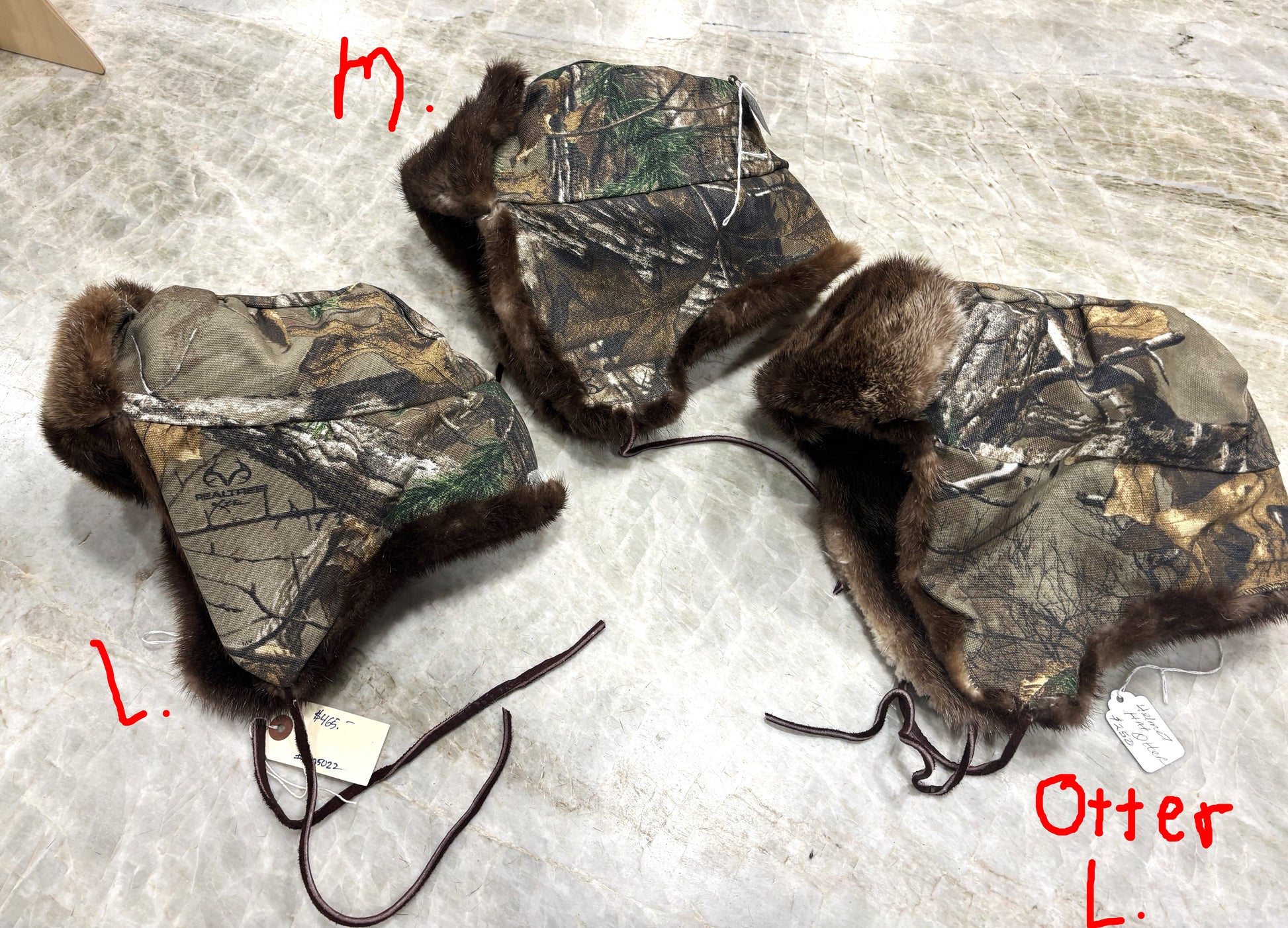 Beaver or River Otter Lined Camo shell Trapper hats