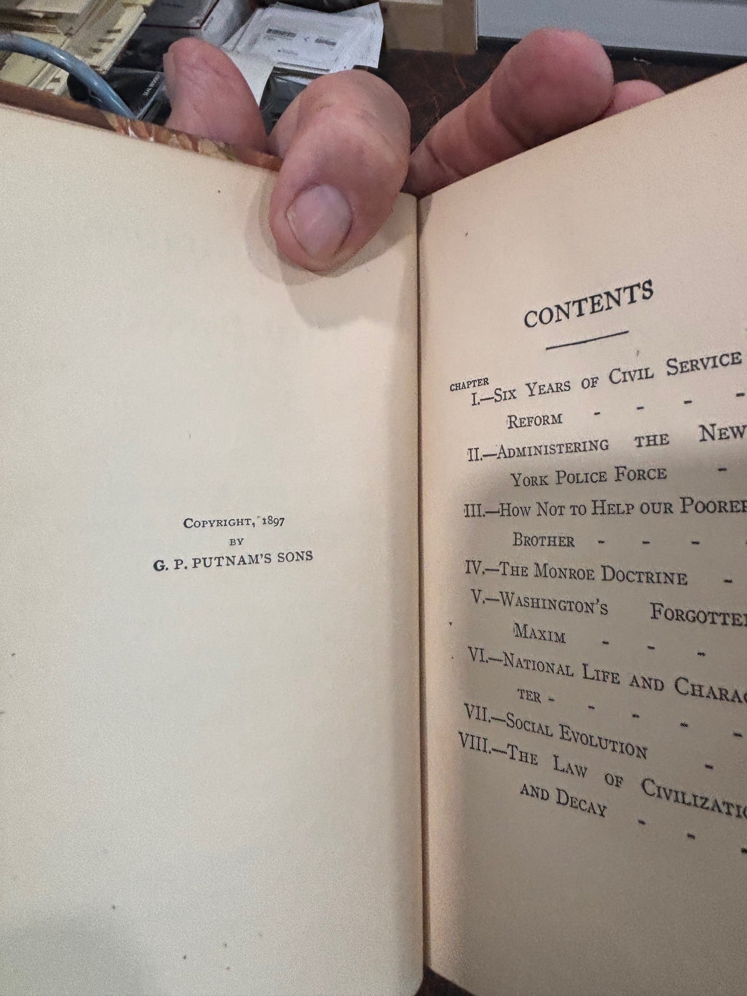 The Missing volume is: American Ideals and other essays, social and political; Of all the books, this one to me has the least interesting subject matter. And if it were "critical", I could probably find another copy .... but I seriously doubt it would be matching ... it would be a newer publication that someone has broken. All said, there is tremendous reading right here.