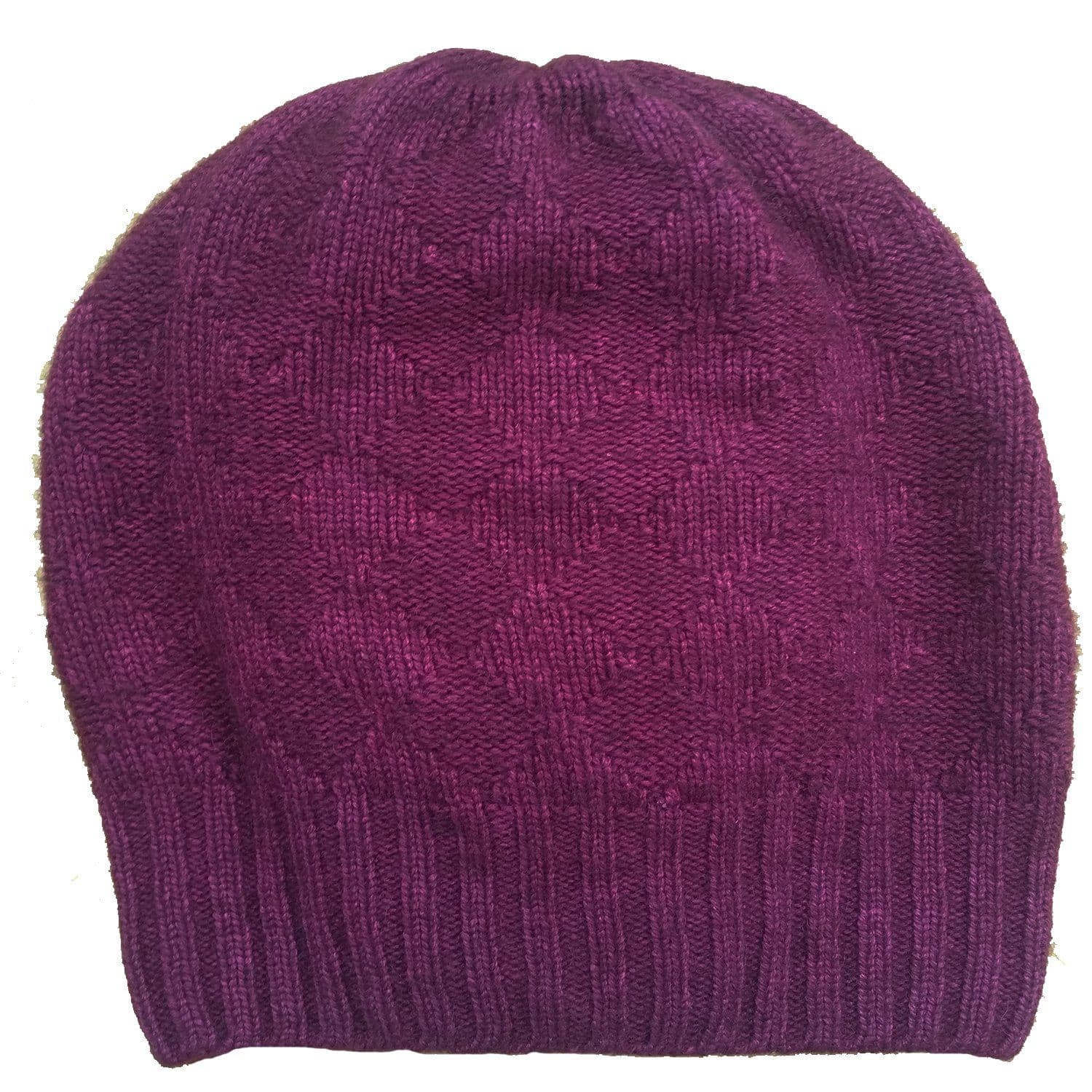 Our bison/silk knit hat, seriously sleek, soft, lightweight and warm. This hat is designed with a looser fit as a slouchy hat. The knitted pattern is diamond. Available in natural (undyed) and four colors.