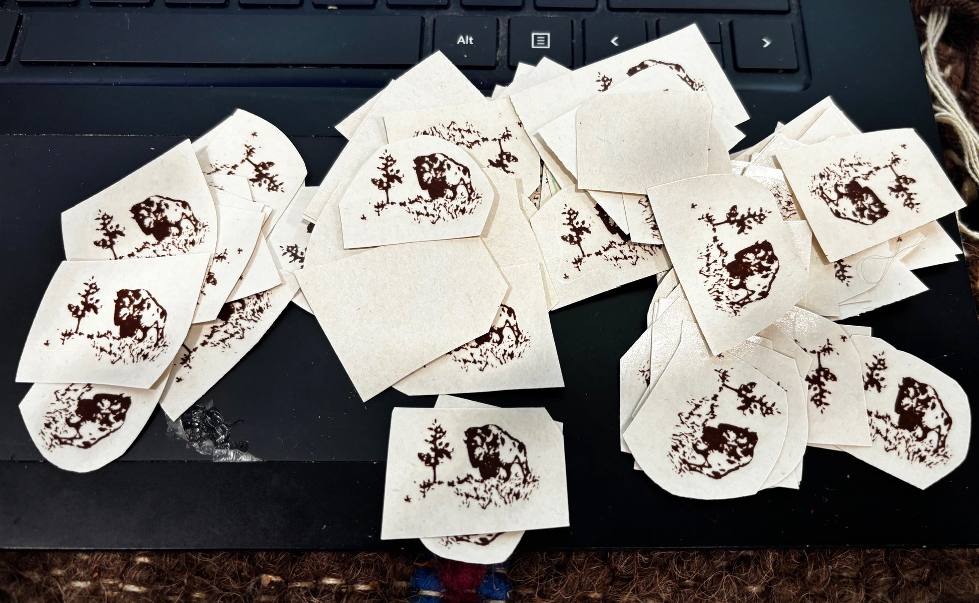 I quit counting at 50 ... could be 75 or so of these little guys (and gals). Only the one image; they have been stuck back in the chest with all our bison patches. They work well still.