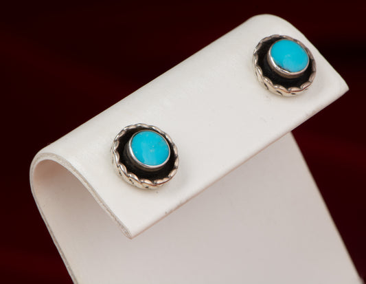 SILVER PEARL RANCH - Small Circle Turquoise and Sterling Stud Earrings