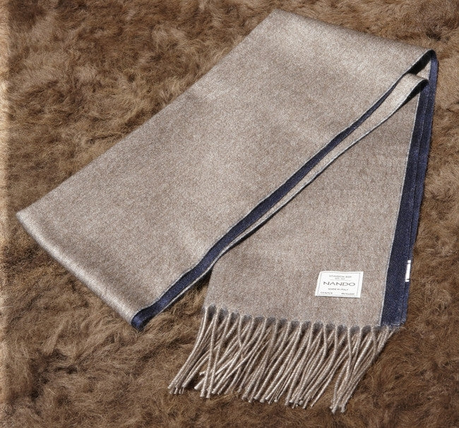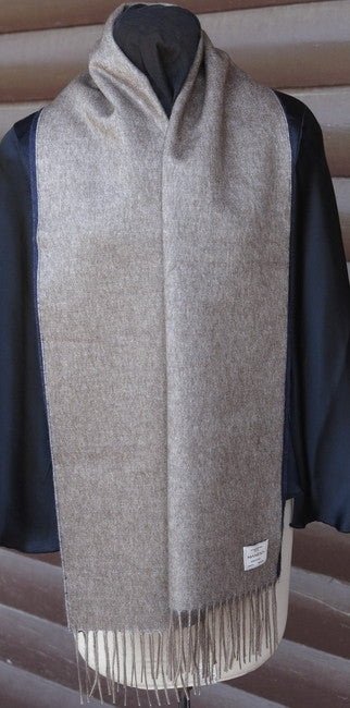 This elegant scarf is 48% bison down/52% Italian silk, stylish for either men or women. 15" x 64" Made of our American bison down fiber, spun and woven in Italy exclusively for the five store Qiviut Boutique chain by Banff designer Fernando Alvarez. Au latte on one side and deep charcoal or navy on the other.