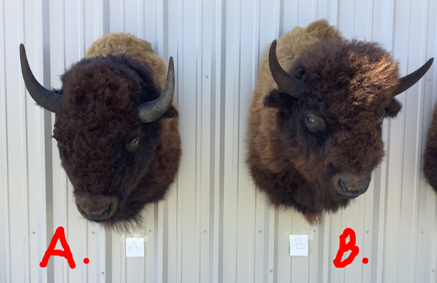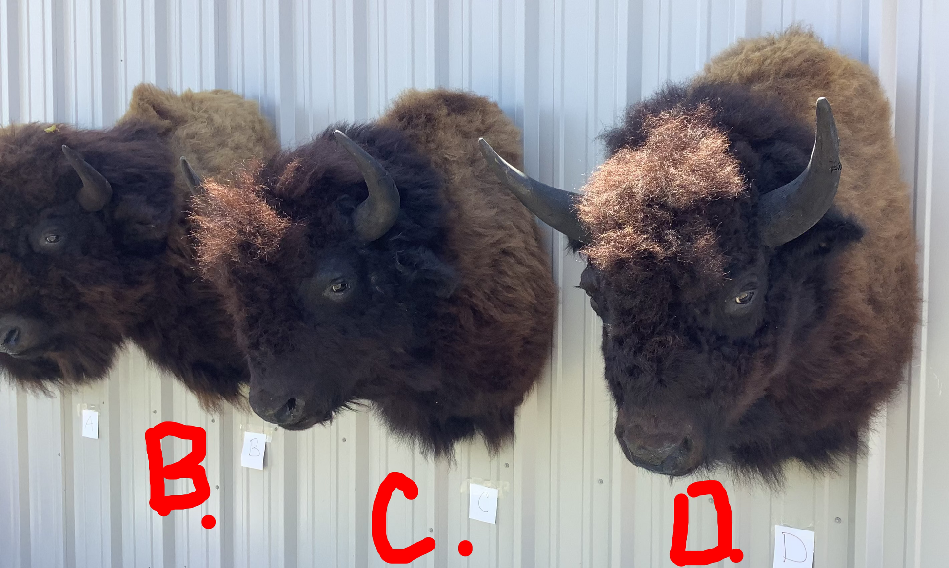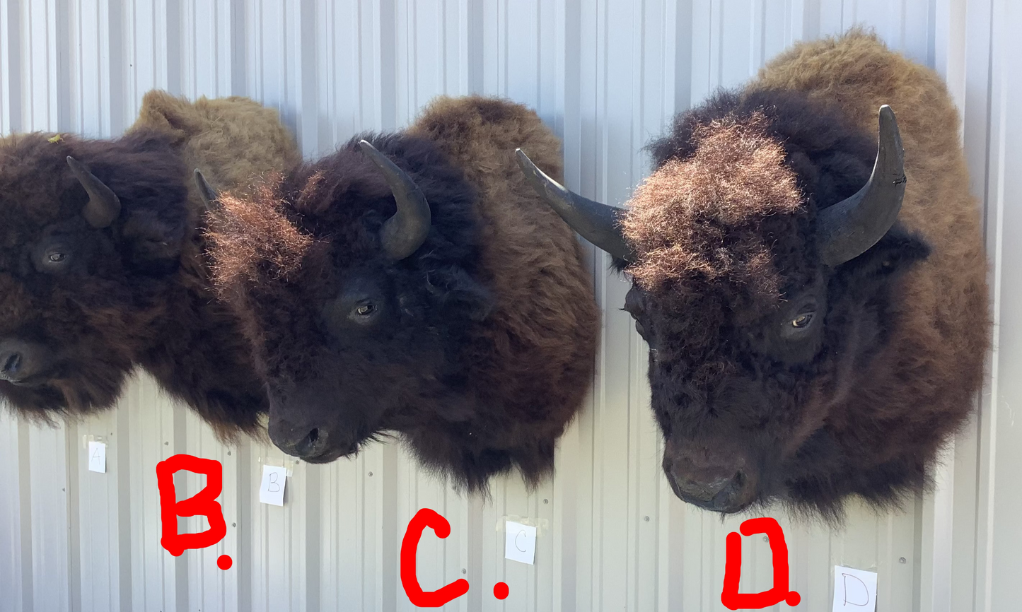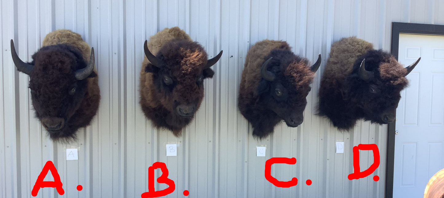 Last November, 2024,  our very special taxidermist friend, Darrell P, got me the 5 mounts we ordered a full year earlier.  They were gone before New Years Day.   Darrell has now delivered SIX very nice bison shoulder mounts.    These are priced at least $750 less than the current market price .... check it out!  If you even wanted a bison shoulder mount ... do not hesitate.