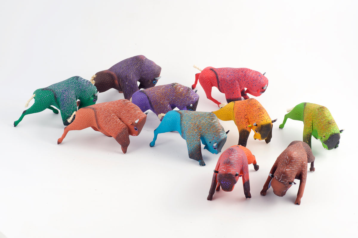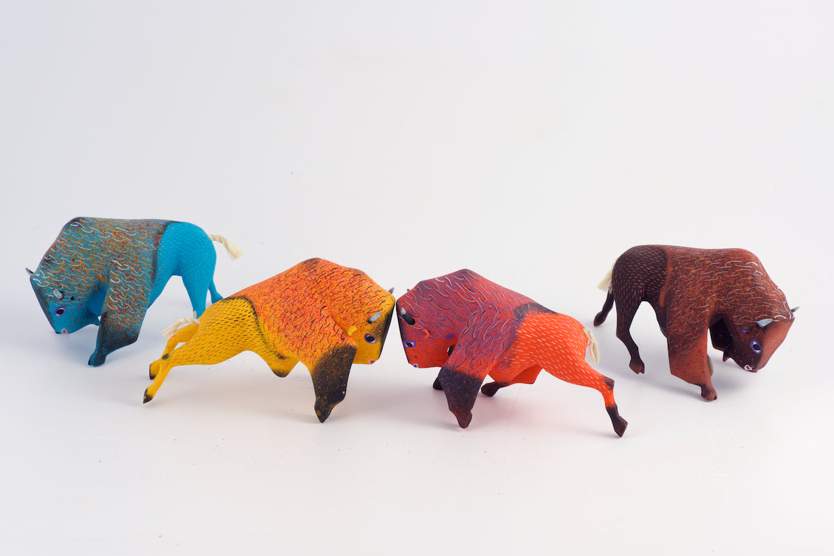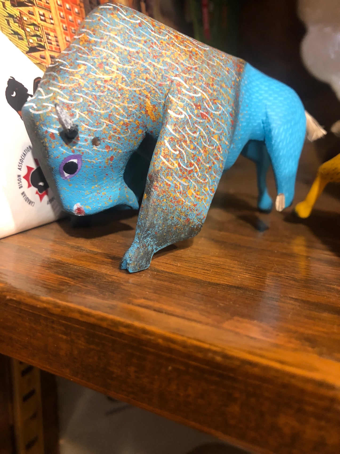 These are Oaxacan Mexican hand carved bison figurines - about 5" long and 3' tall - over 25 years old and have been in my collection that long. Only one of each color.