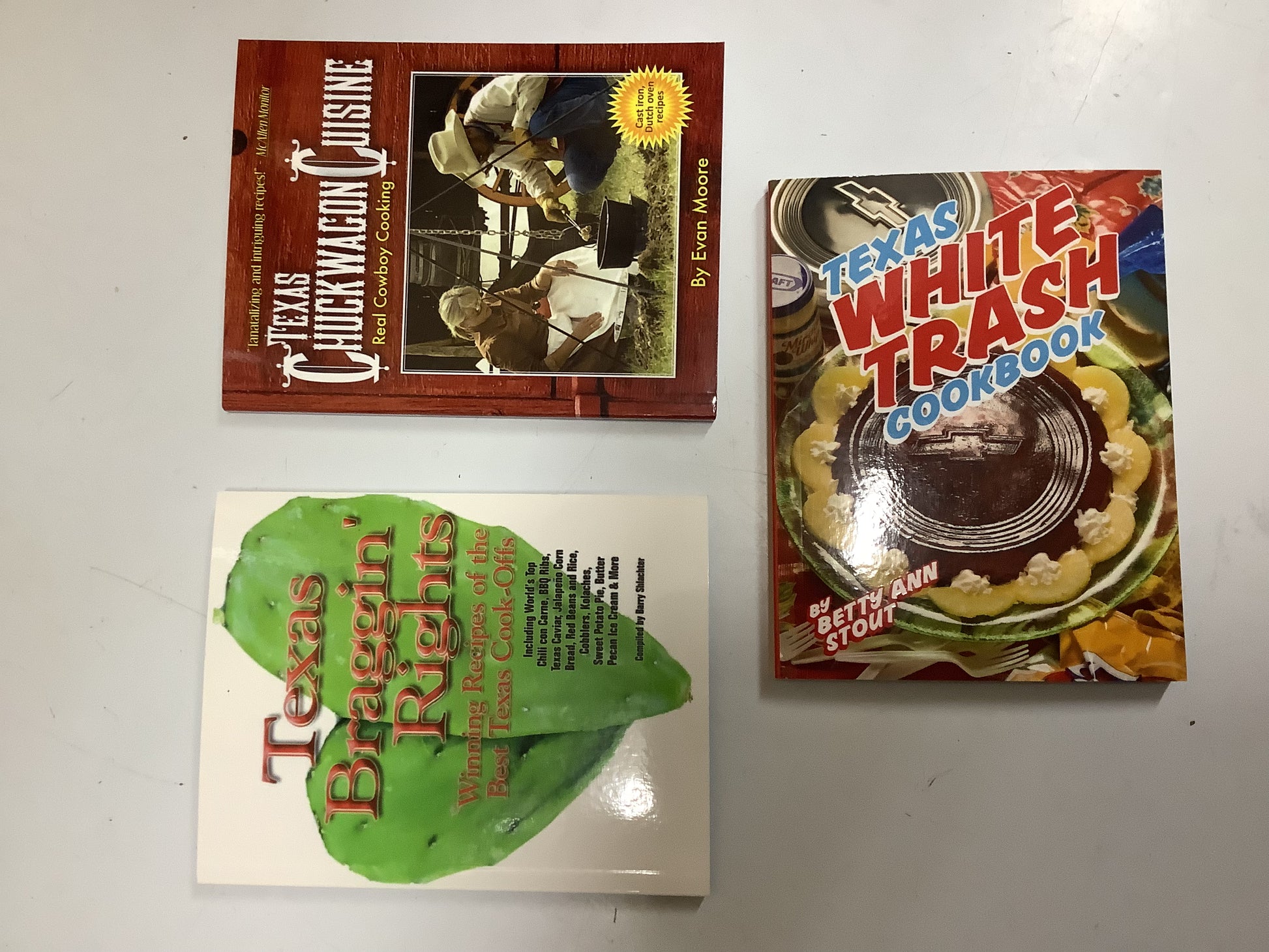 The Texas CookBook Trio - Texas Chuckwagon Cusine, Texas Braggin' Rights, Texas White Trash Cookbook