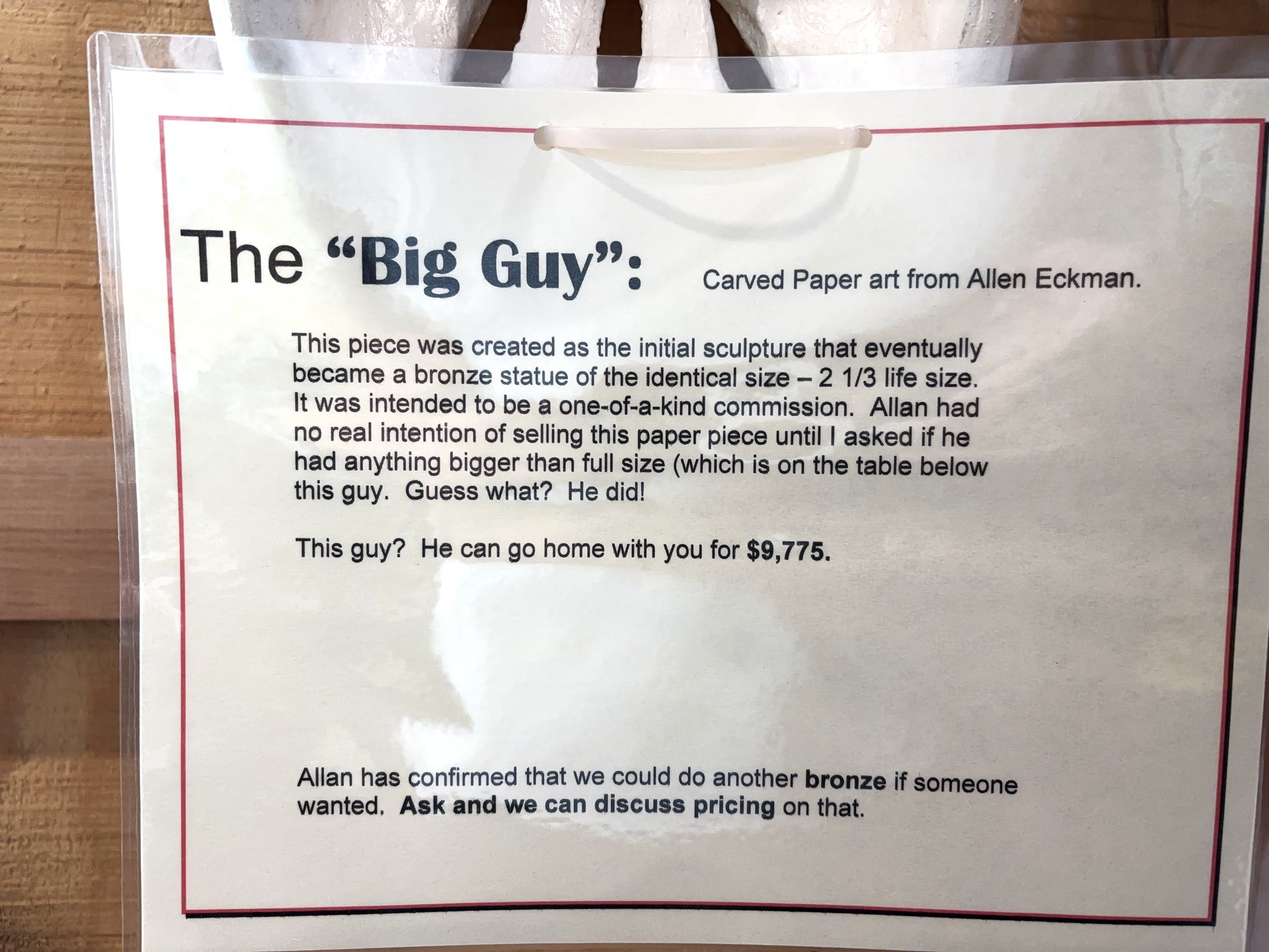 Never another ... the only one. This was the model for a bronze casting Allen Eckman did as a commission. While he never intended to sell this guy, we persuaded him to make it available just for Herd Wear 2 in Amarillo. That store closed a couple years before we sold the original Herd Wear store. Now, the Really Big Guy hangs out in the Online Distribution Center with Bob and myself. But buffs are roamers by nature ... and he is restless to move on!!