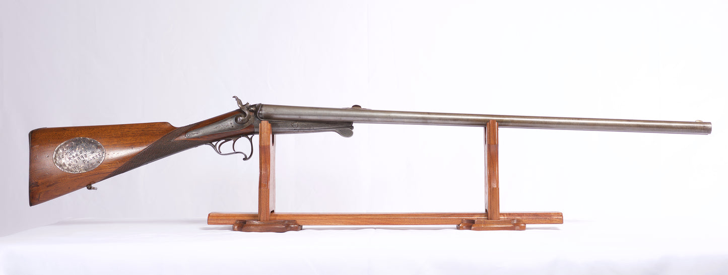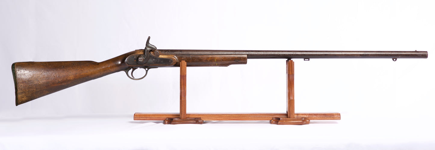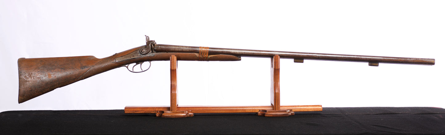 These guns, in all likelihood, saw use on one or more of the American frontiers. There are muskets, rifles, shotguns, combo pieces, pistols. Each long gun comes with its own adjustable hardwood stand made by Parade Rest Displays (really superior products ... and also available for sale on our site).
