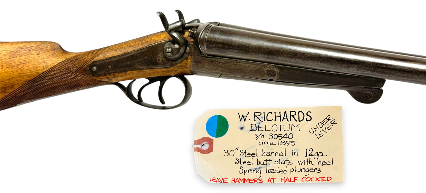 Antique W. Richards 12 GA. Side-by-side Underlever Backlock Double Barrel Hammer Shotgun