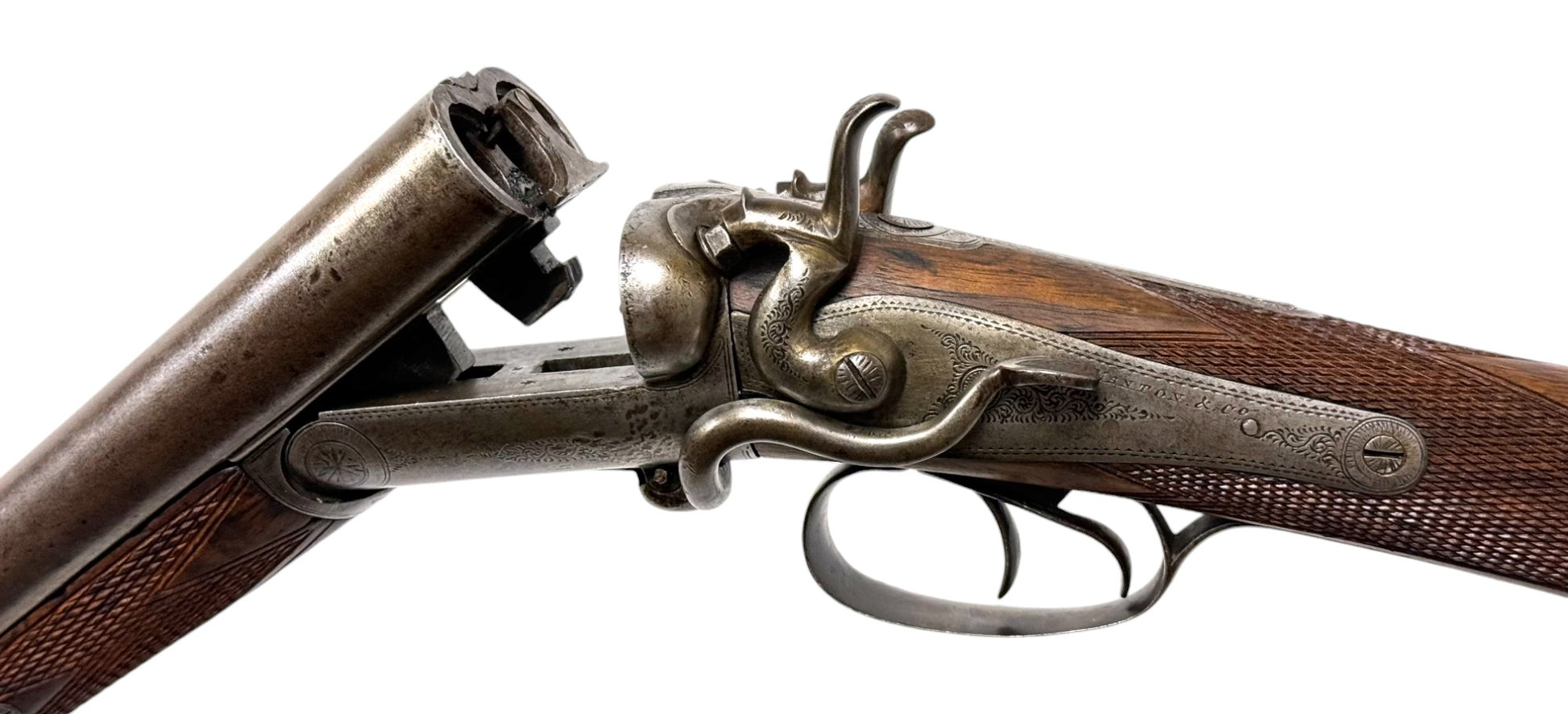 Antique J. Manton 12 GA. Side-by-side Side-Lever Sidelock Double Barrel Hammer Shotgun