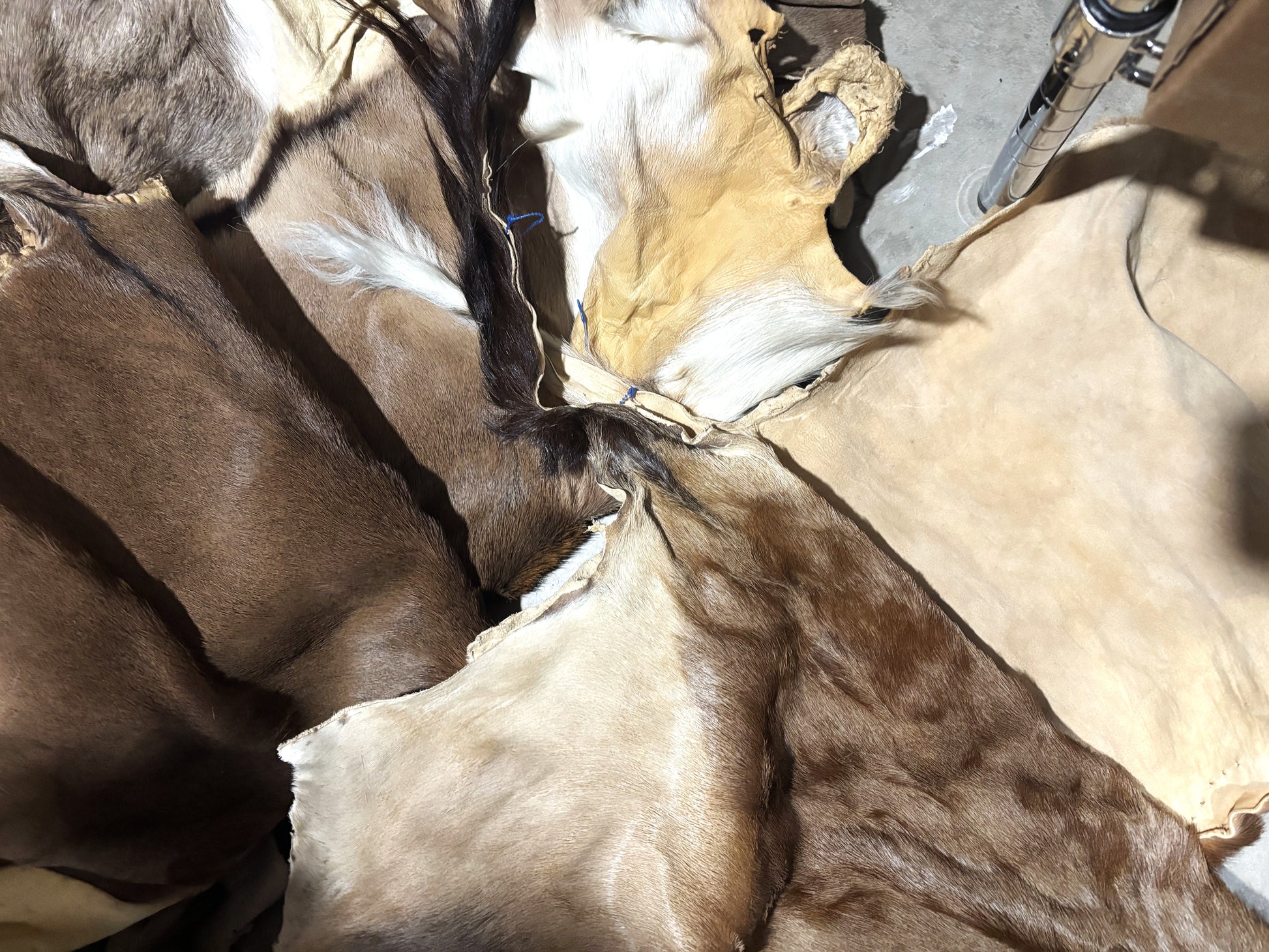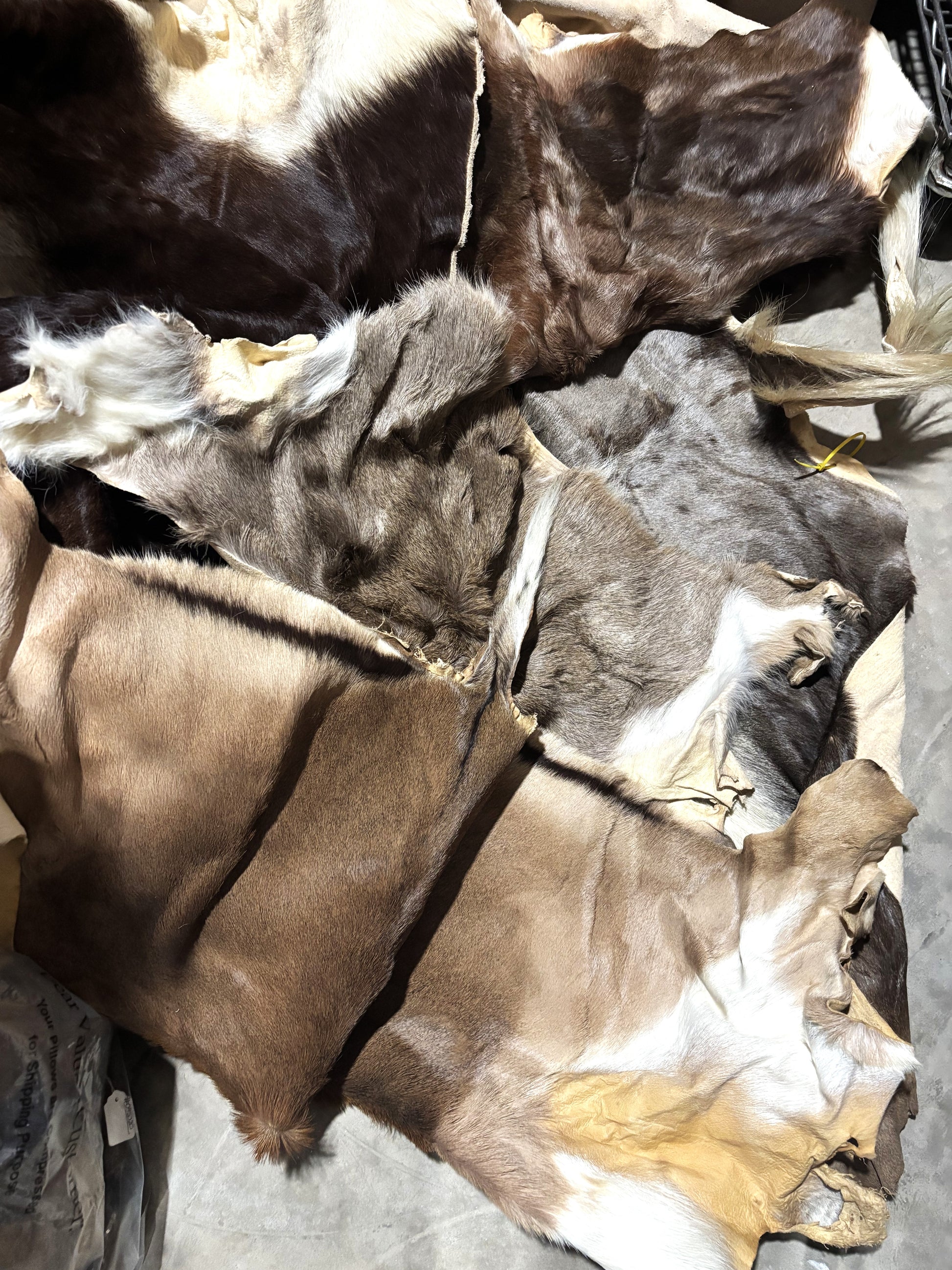 Sometimes, however, they get tanned into either hair-on pieces or leather. These back sides make great "project" material. I've got quite a stack, mostly from African antelope type critters. Some are quite large (maybe 4' across by 2.5' wide) ; others are pretty small.