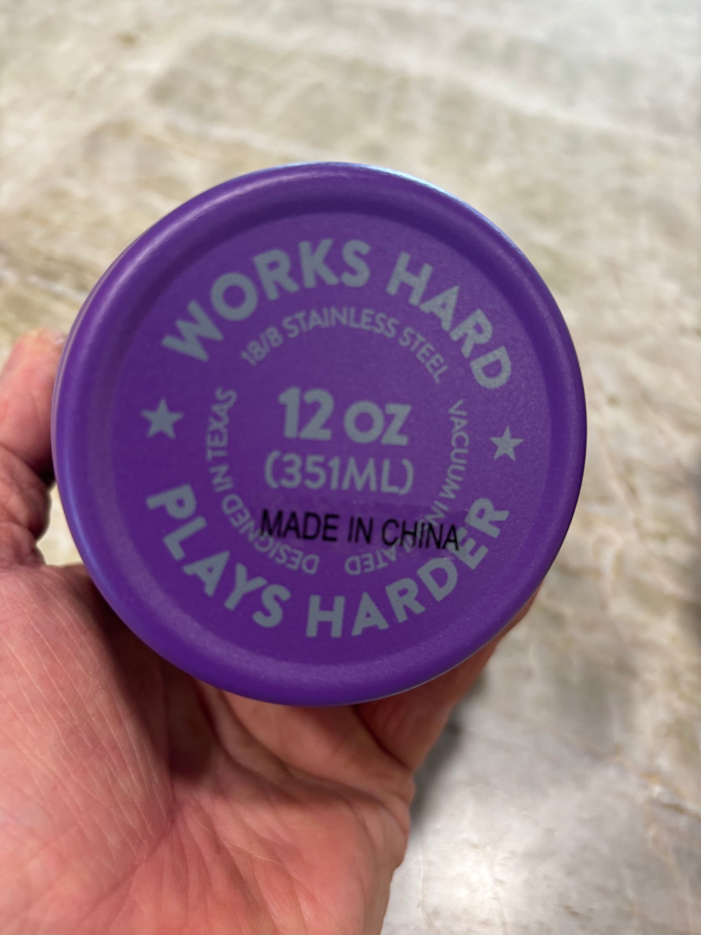 12 oz with threaded on lid in (almost) Royal Crown purple (the only color available for this deal).