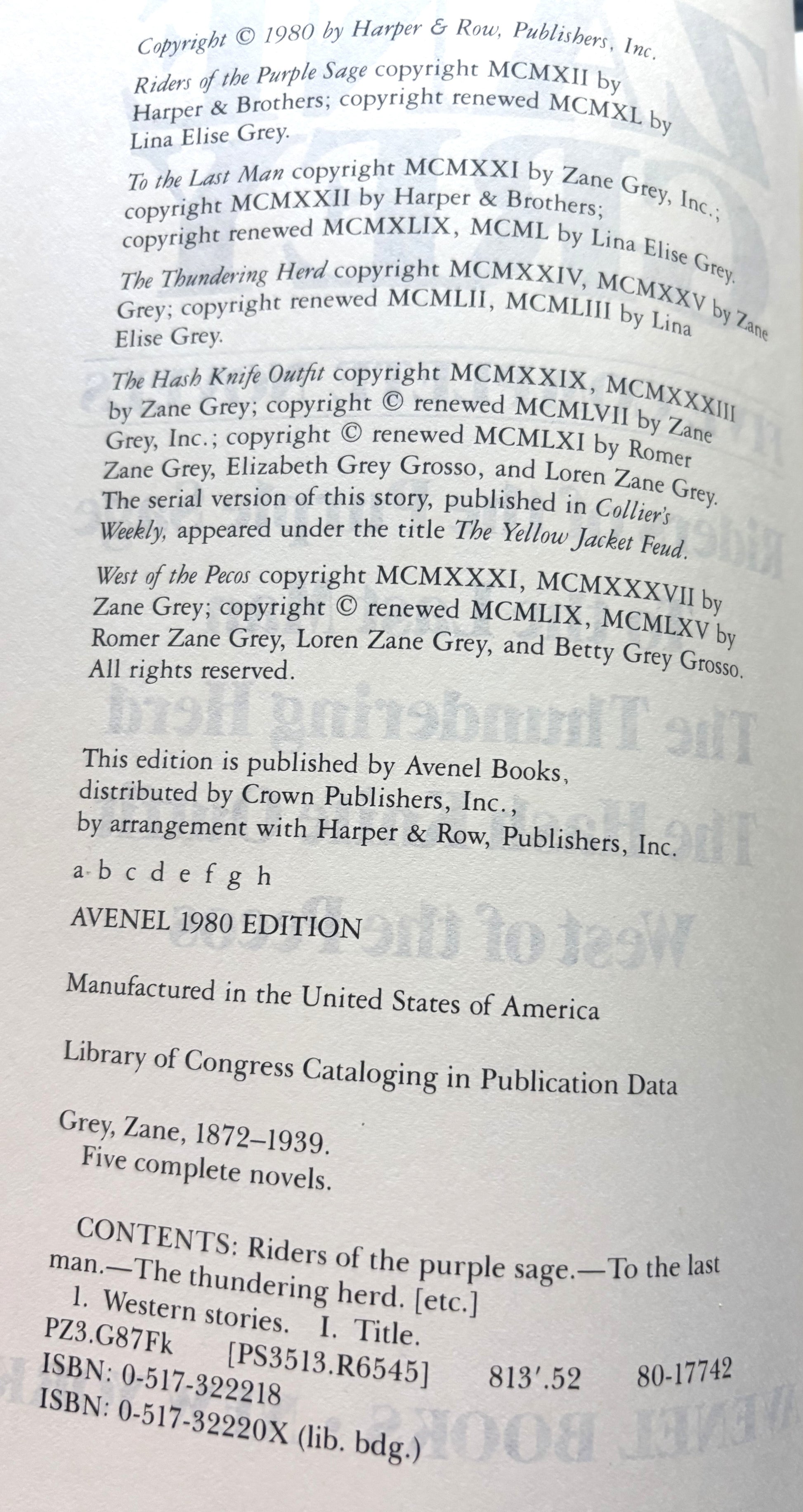 Riders of the Purple Sage, To the Last Man, The Thundering Herd, The Hash Pipe Outfit,