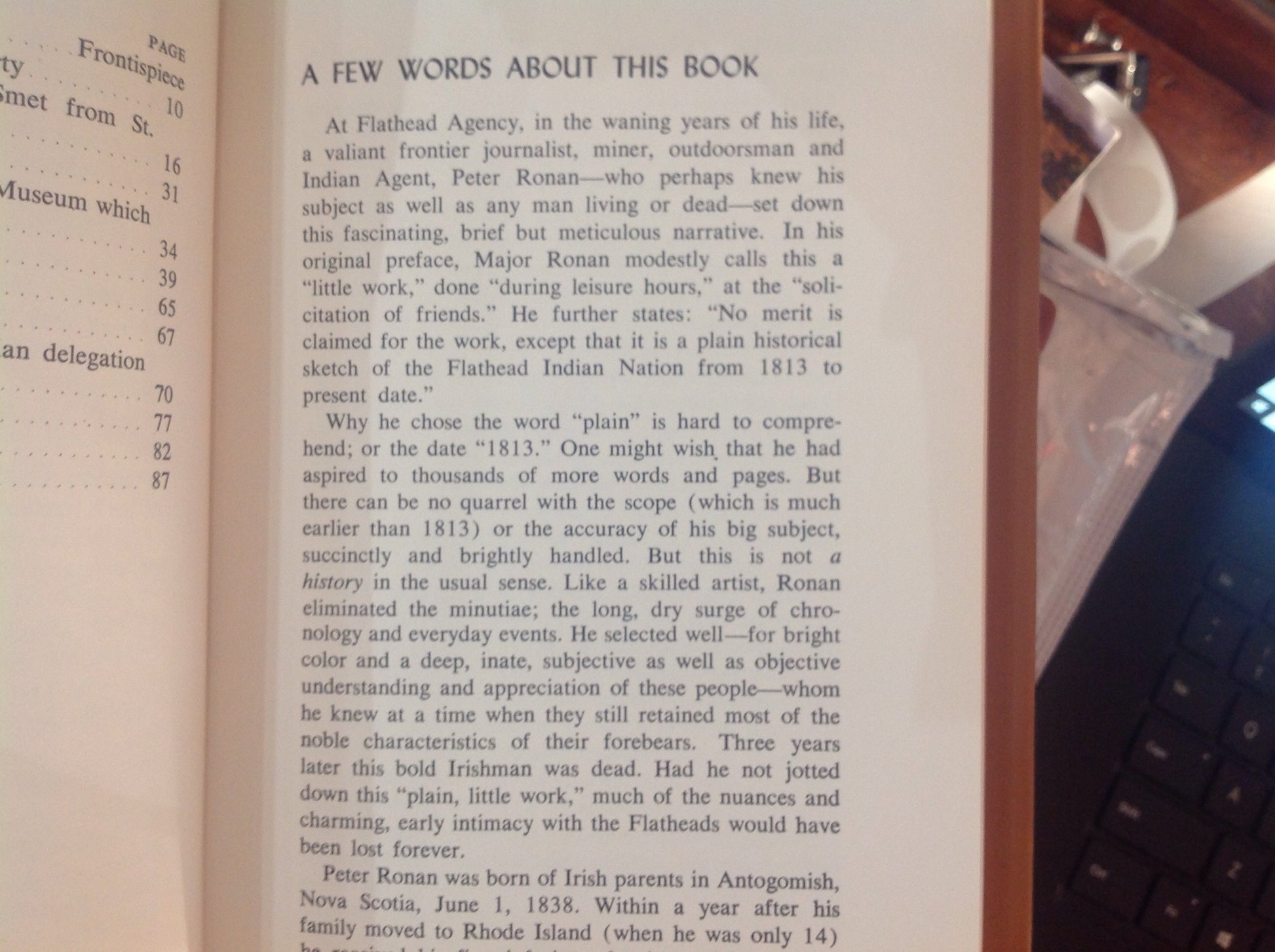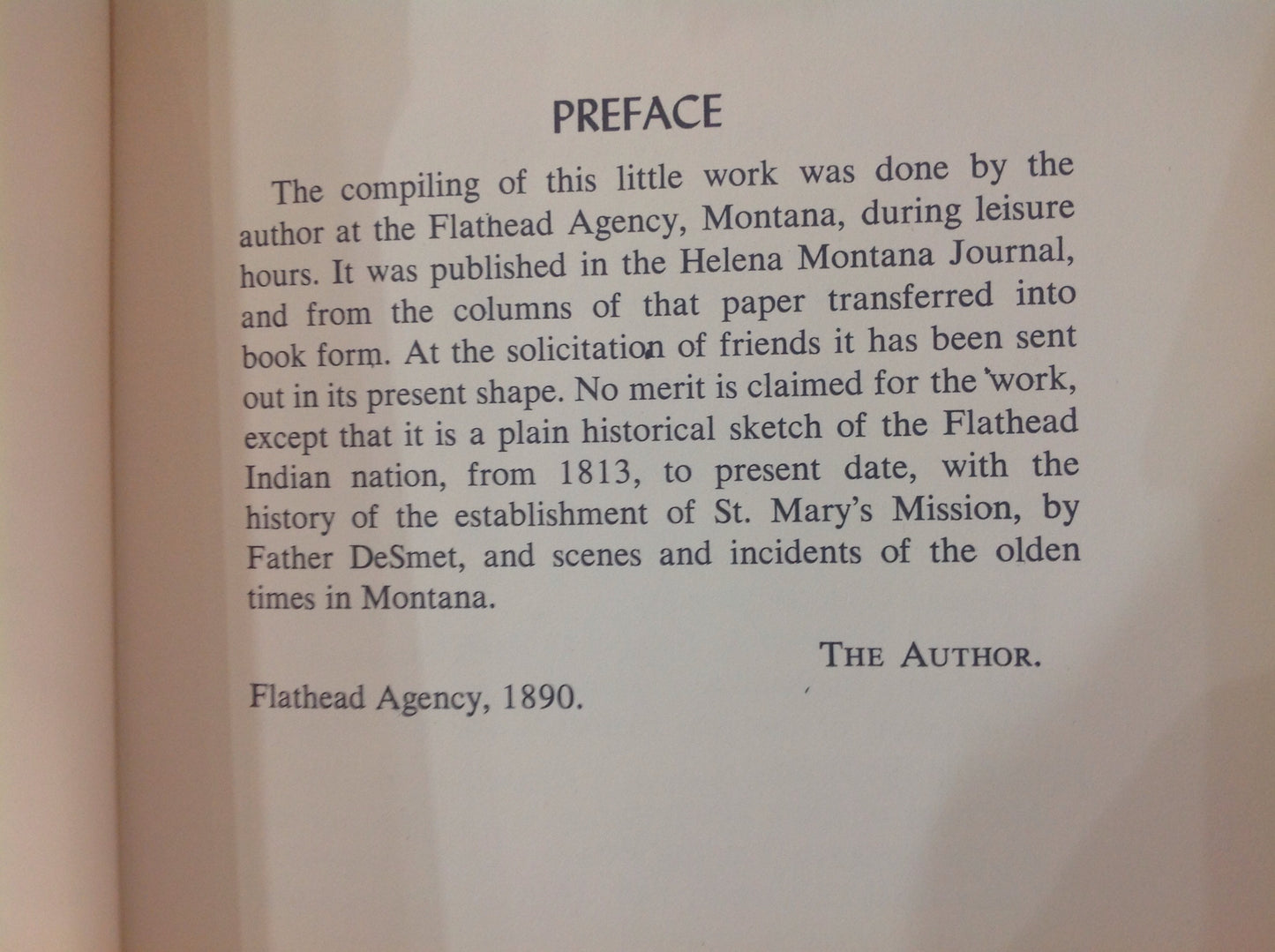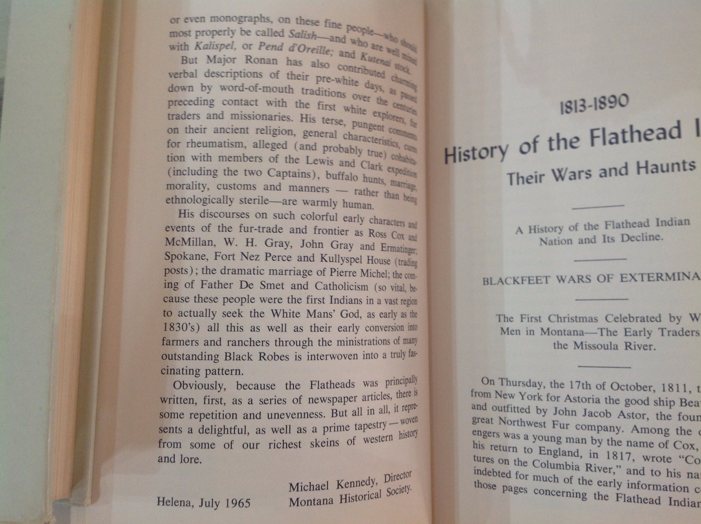 A detailed and well documented account of the tribe(s) that became the Flathead Indian Nation. The "Forward" was added to this printing in 1965 by Michael Kennedy, then the Director of the Montana Historical Society.