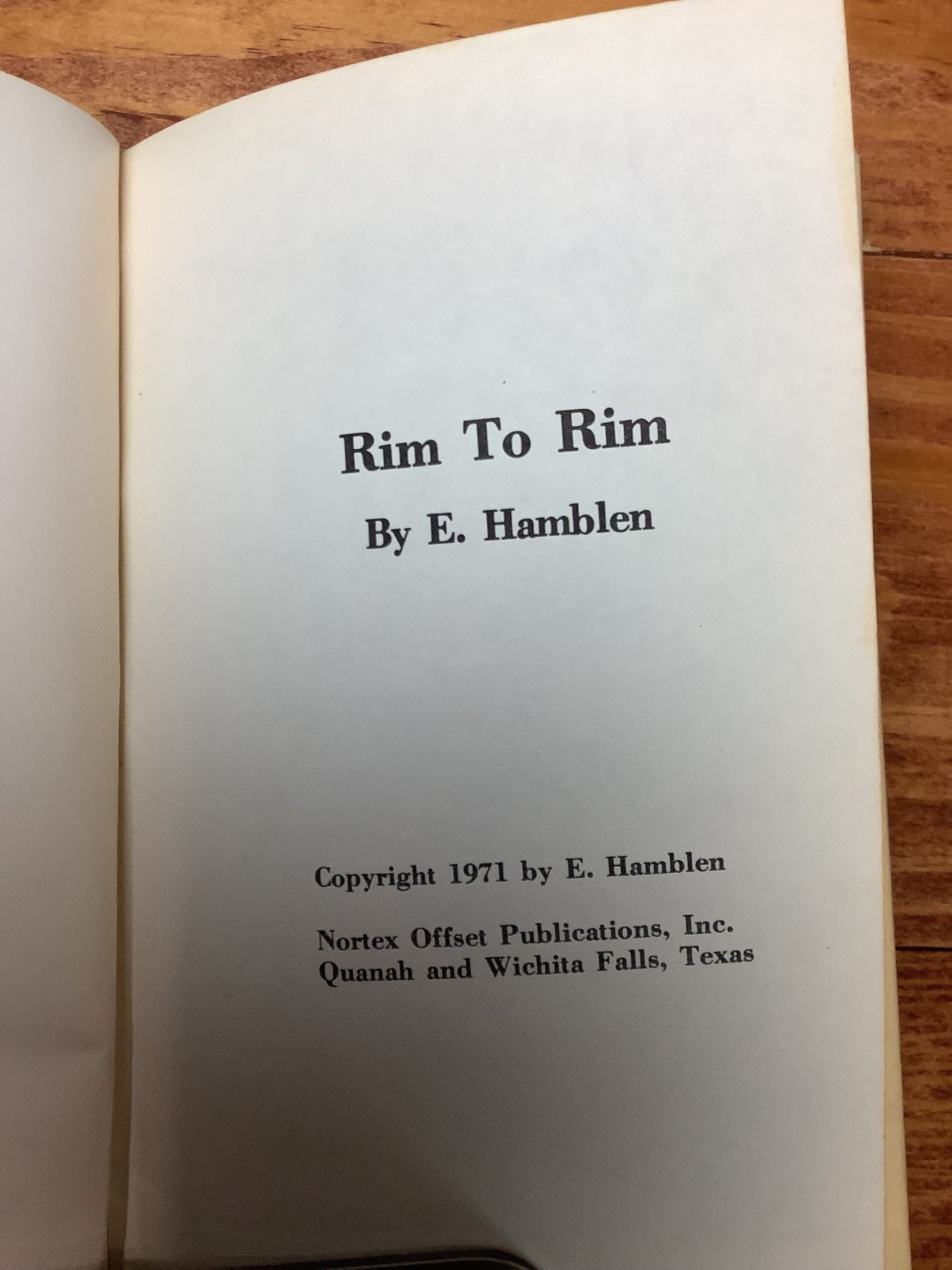 BOOKS - "Rim to Rim" by E. Hamblen. The Story of the "Hamblen Highway" across the uncrossable Palo Duro Canyon
