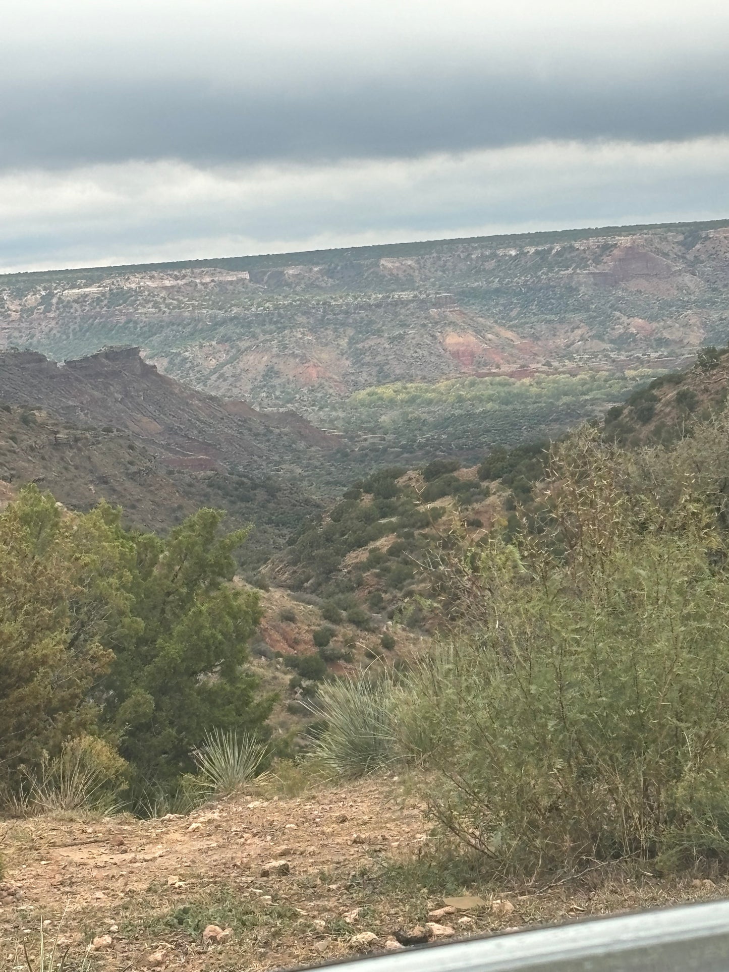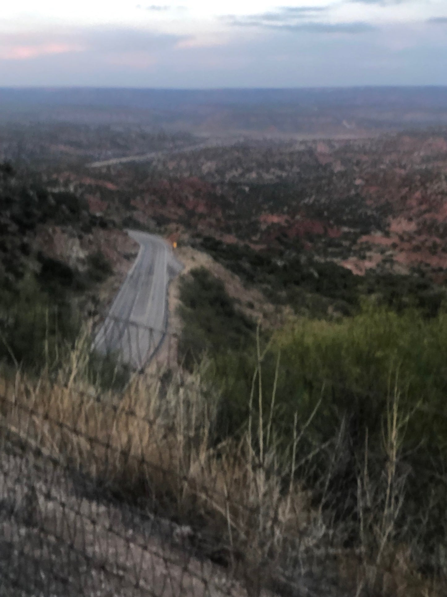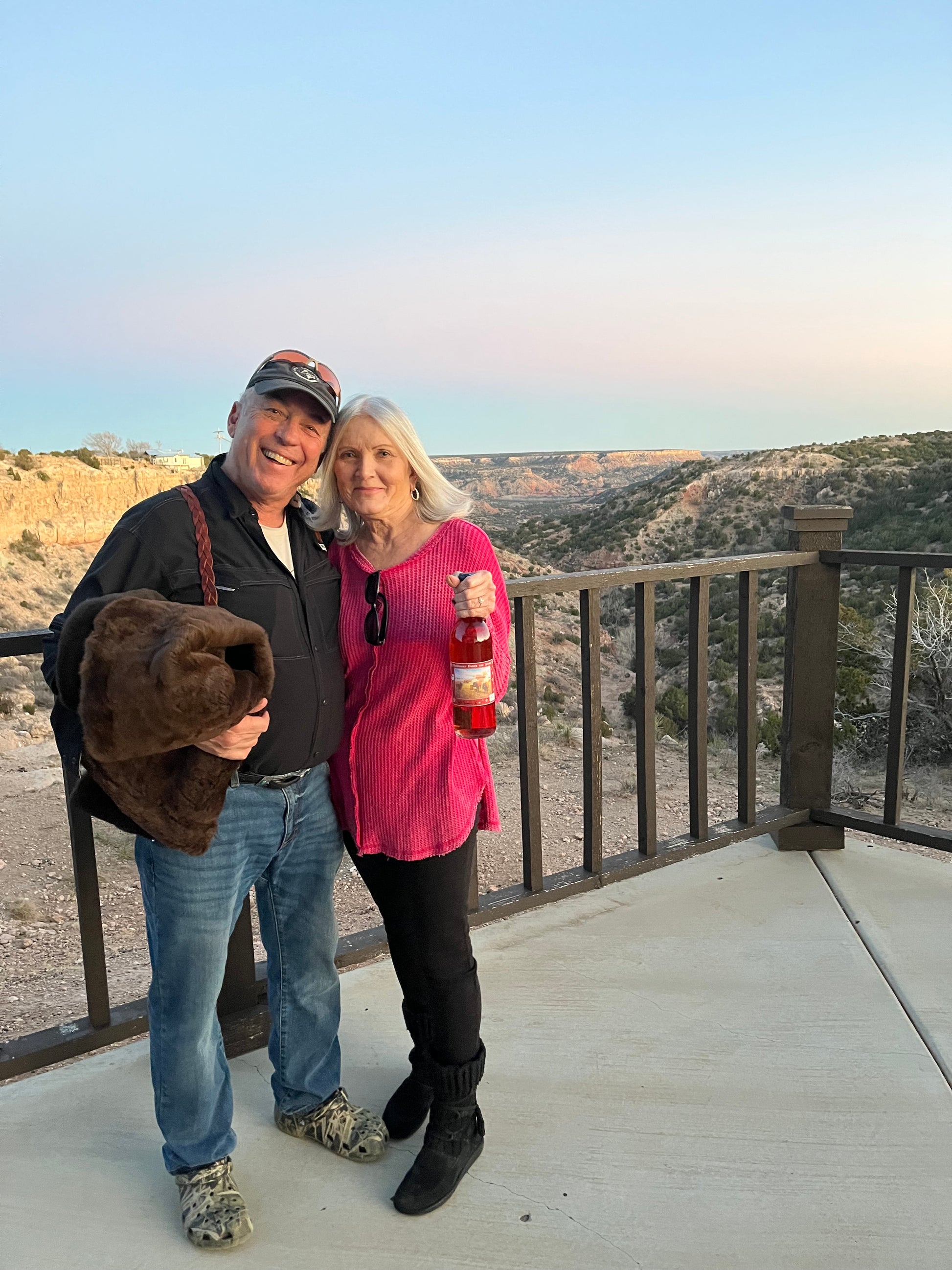 The story of Will Hamblen. Hamblen lived in the Palo Duro Canyon ... in an area where there was no road across. No one thought about building that road .. except Hamblen. It is one of the most fascinating 25 plus miles I have ever driven. That is my bro-in-law, Randy Shelhorse, whom is in several blog posts (super great guy) standing at the outlook above Hamblen Drive; then next is looking north up Hamblen (and the last two - Vicky and I at Jack Sorenson's porch actually looking South across the canyon at "Sorenson Point".