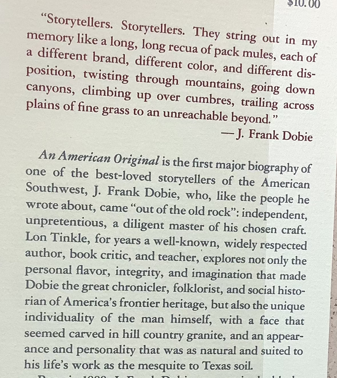 BOOKS - "An American Original - The Life of J. Frank Dobie" by Lon Tinkle