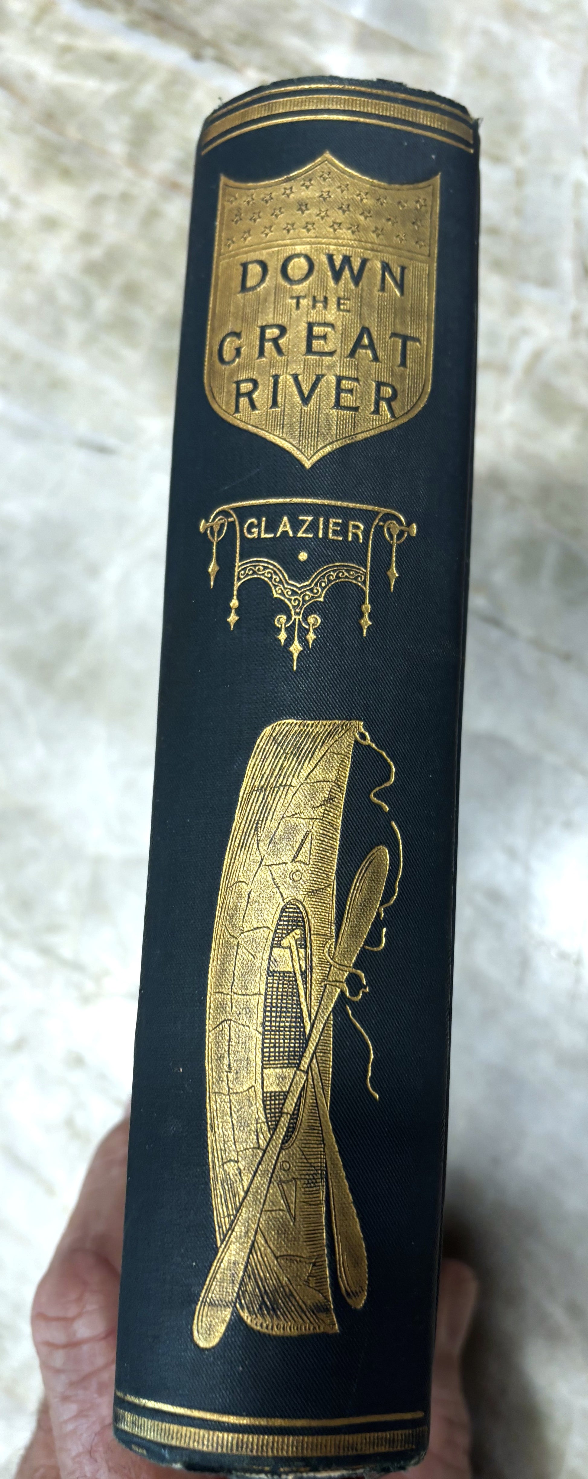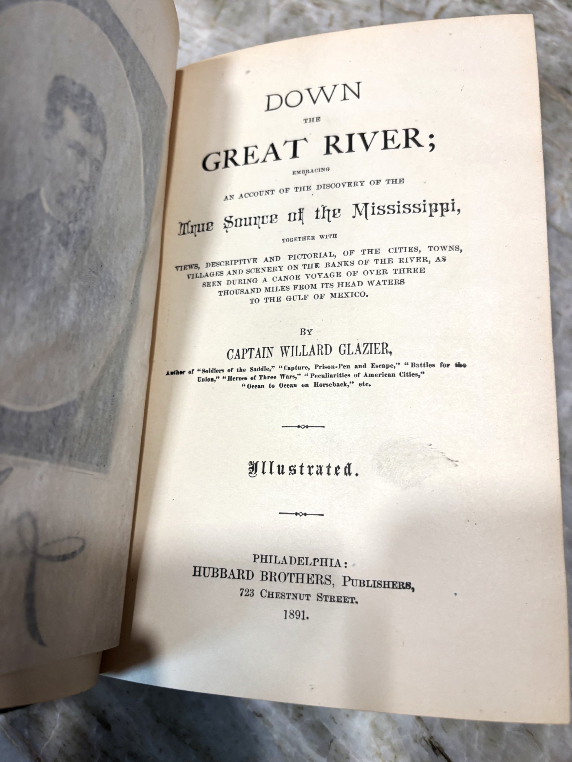 From the Book Hoard: We were unsure as to whether to keep or offer this volume for sale. First, it's scarcer than hens teeth (or hair on my head). Second is that the map is so absolutely unique the way it is made in two parts and then folded to sit inside the book. And the story (which some have derided as part fiction) is a well and beautifully told tale. If it's true, or partly true, or just imagination doesn't bother me. The Mississippi River does exist; does captivate and stimulate both sight and sound. Then, we found two more copies; both in better shape than the first one. So, for the moment, all 3 are for sale