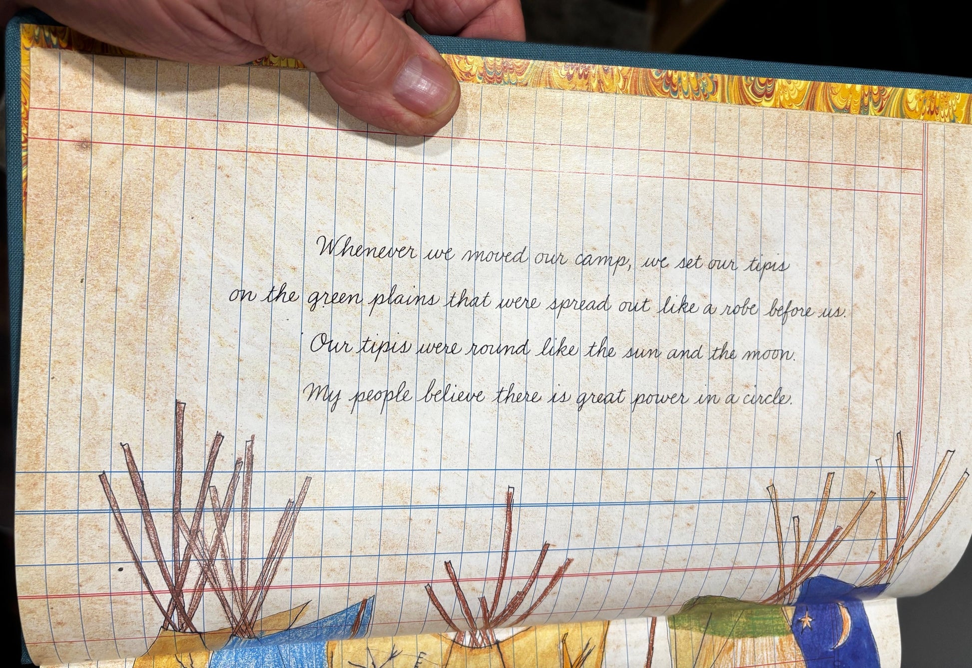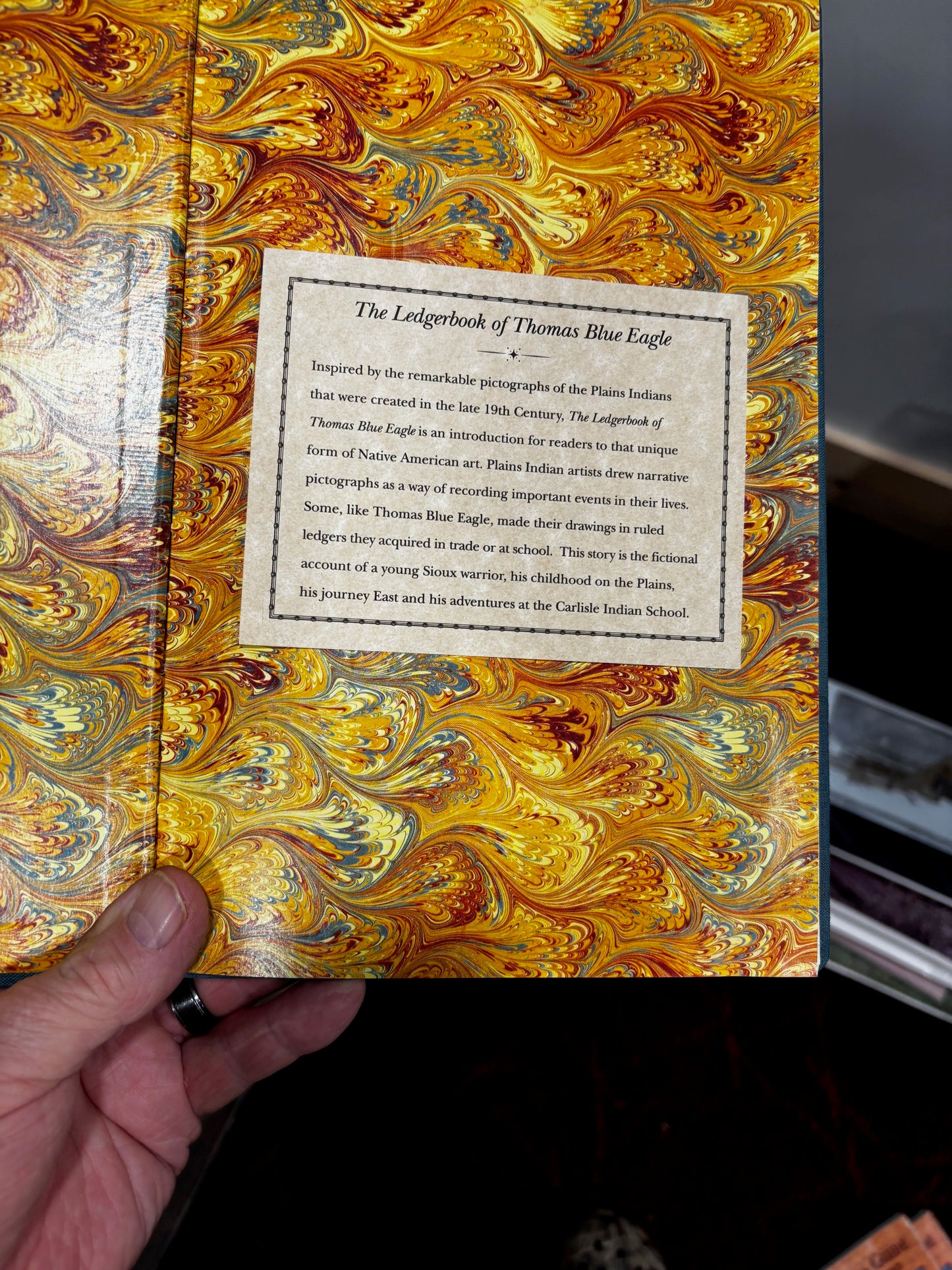 I read about the first dozen pages, awestruck at the art ... ledger art ... before I read the little note inside the front cover. Not all the copies I have gathered have that note ... but I will make copies to go in each before I send them out.