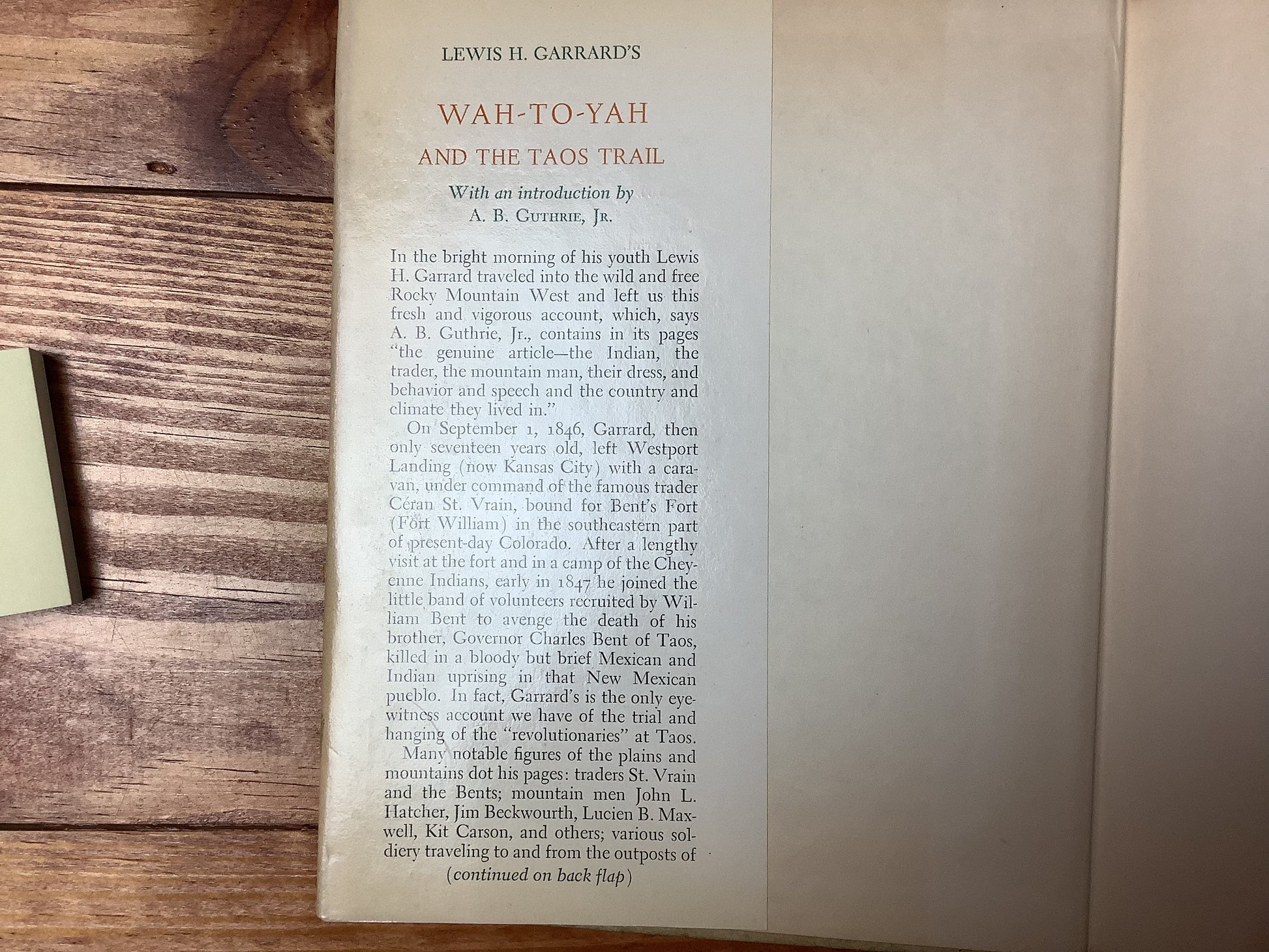 BOOKS - "Wah-to-yah and the Taos Trail" - Lewis H. Garrard