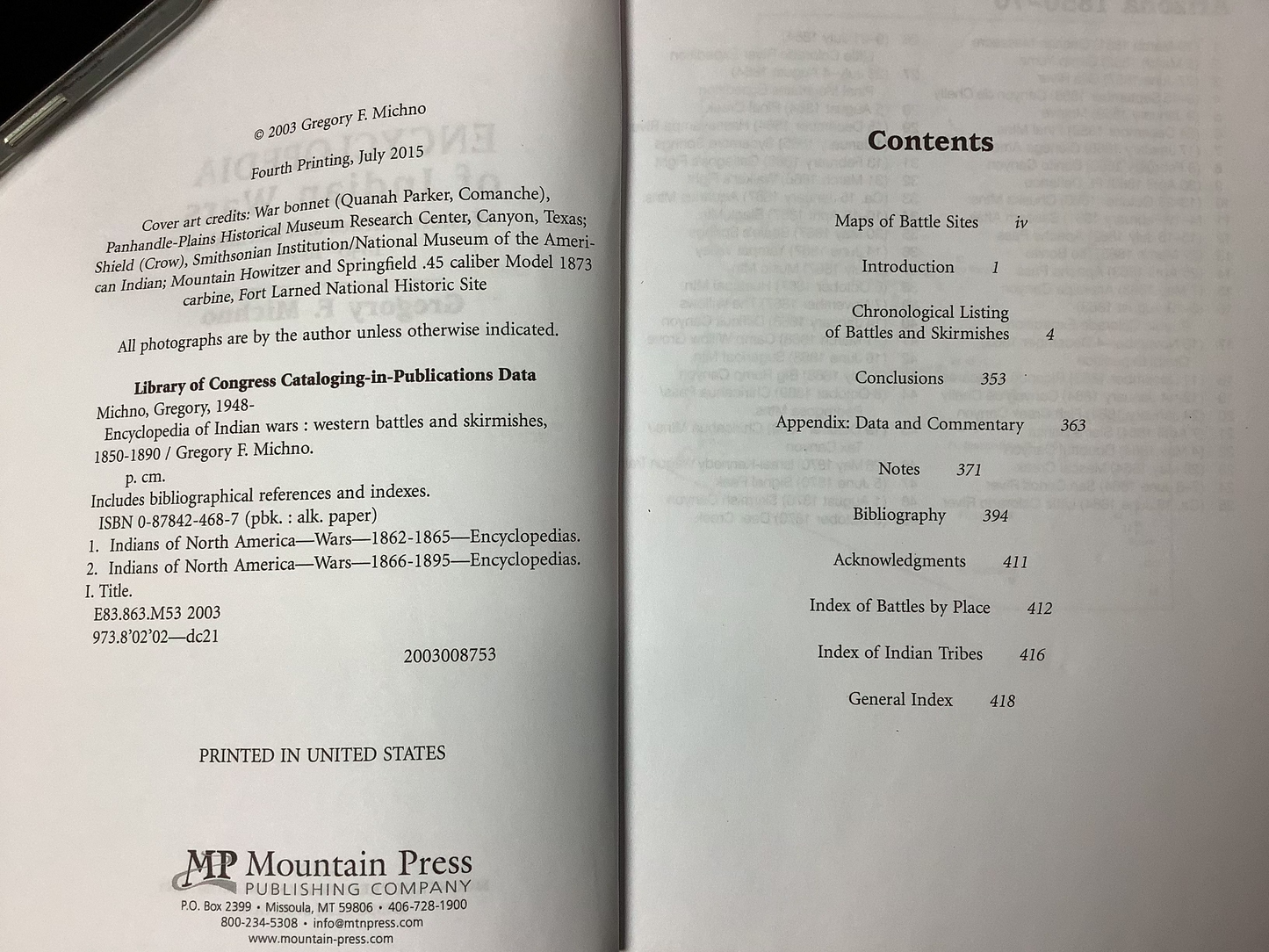 BOOKS - "ENCYCLOPEDIA of Indian Wars - Western Battles and Skirmishes 1850-1890 - Gregory F Michno