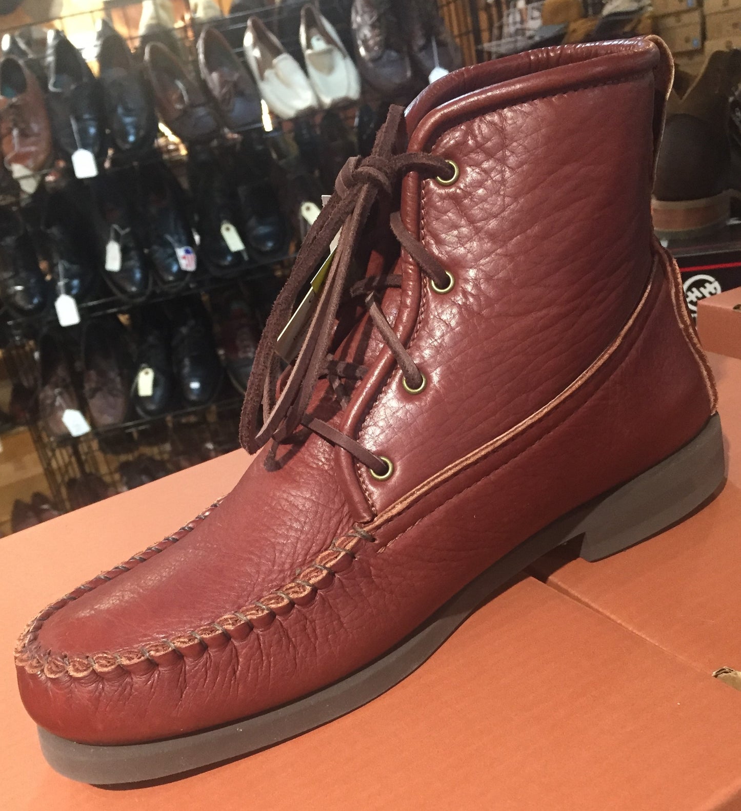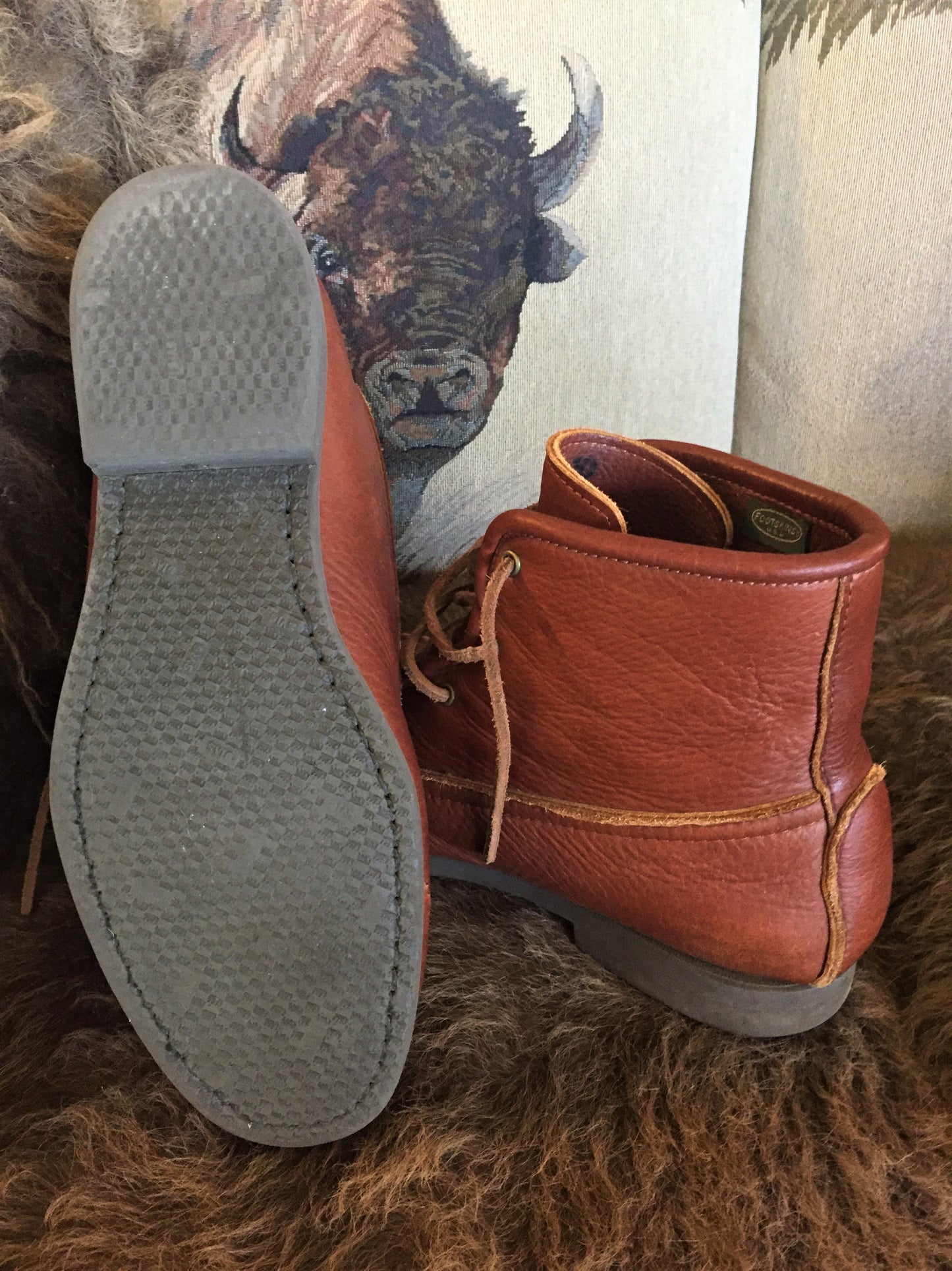 The "Herd Wear" bison Walking boot, made for us ... from our leather, by the wonderful craftsmen and women at Footwear by Footskins.   Full sizes only for both Men and Women (Ladies are by special order with this "Flex Sole".