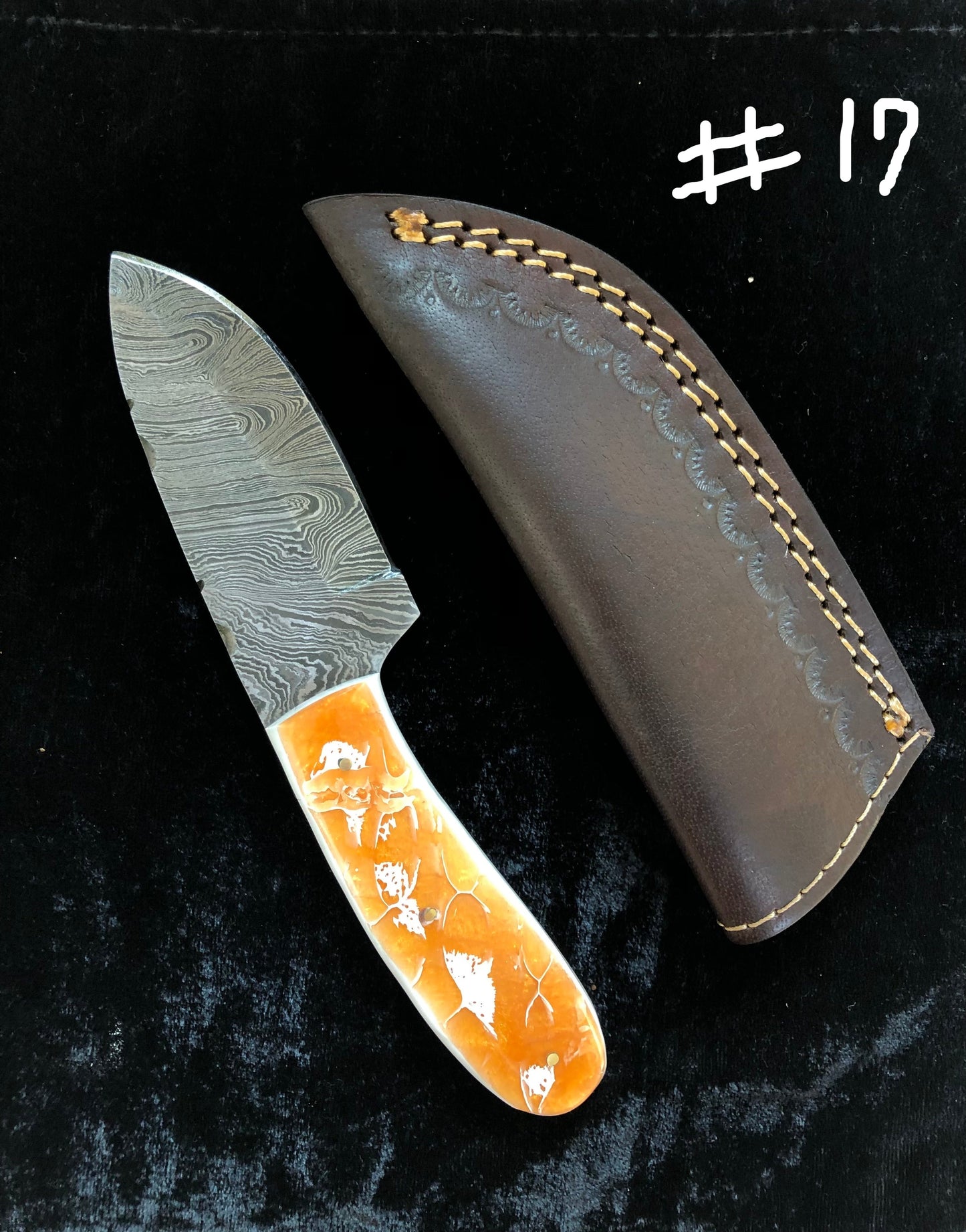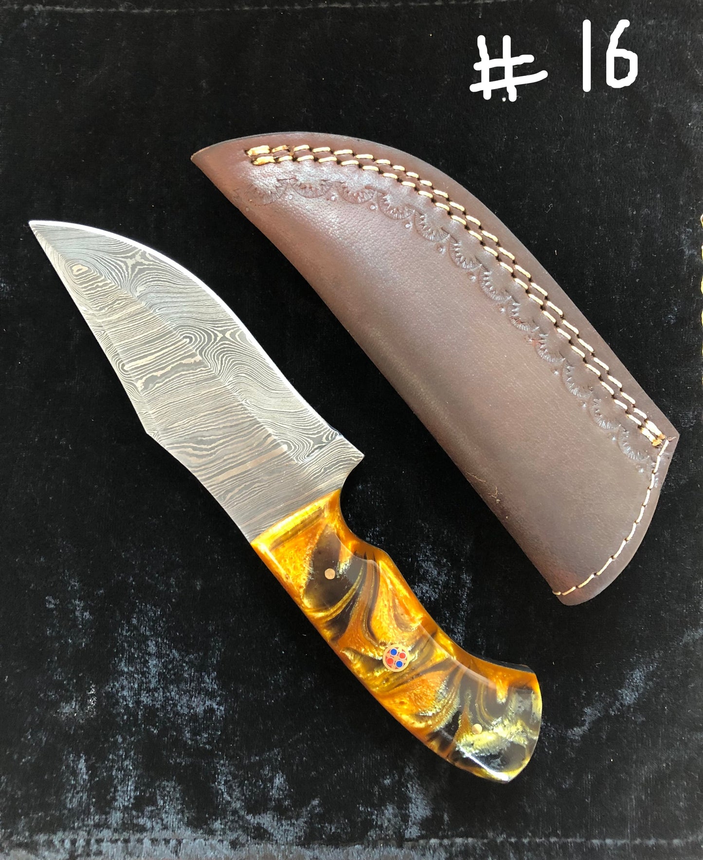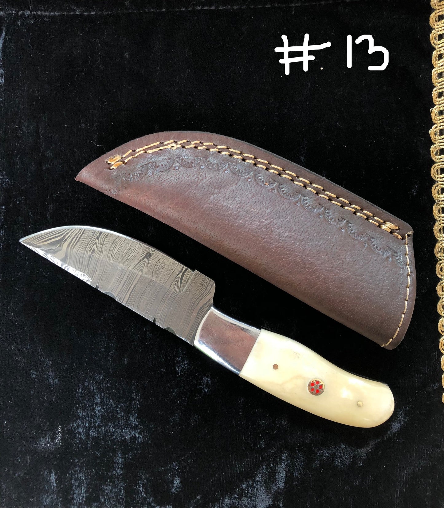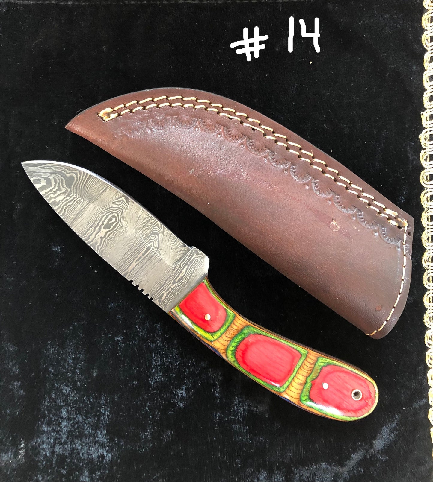 Only a few of each!  All knives have a 2 3/4 - 4" blade; 3"-4" handle .... 6" - 8" overall length.  If you need exacts write me before you order.   [email protected]