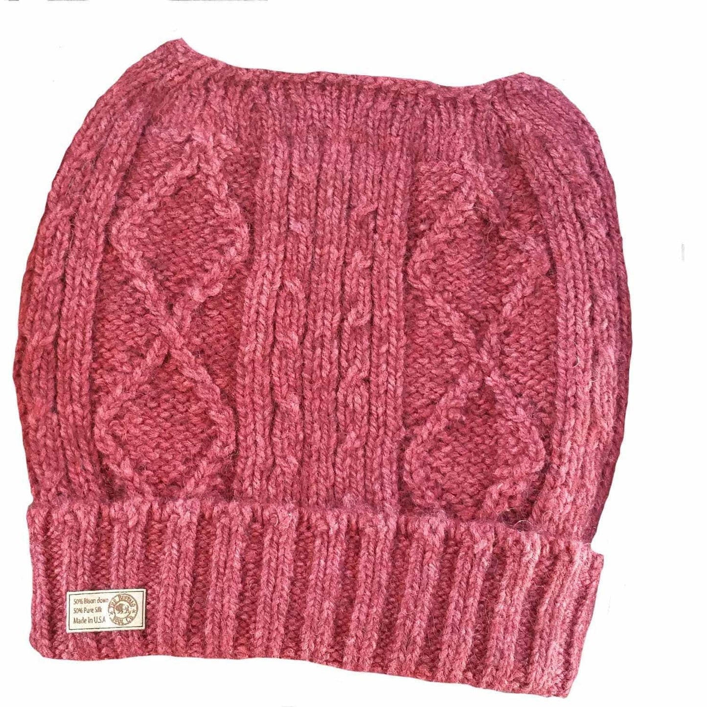 Pro Gear knitted Bison & Muga silk with a diamond cabled design featuring an insert perfect for your messy bun and a 3 1/2 inch ribbed bottom. The ribbed bottom is long enough for a deep or shallow fold with a great snug fit. Choose from five colors, made in the U.S.A.