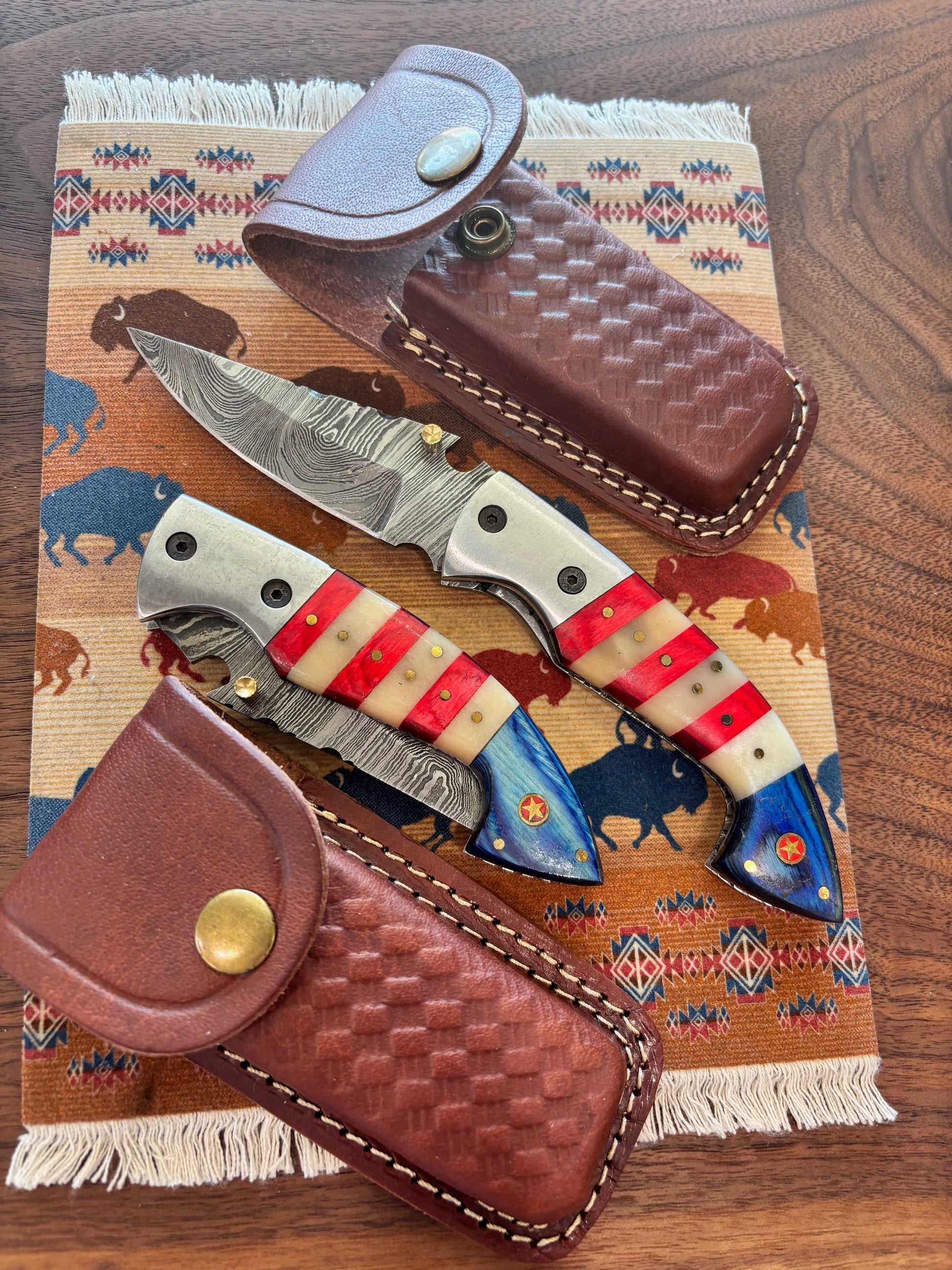 SALE SALE - American Flag colored - Damascus Steel Folding Knife