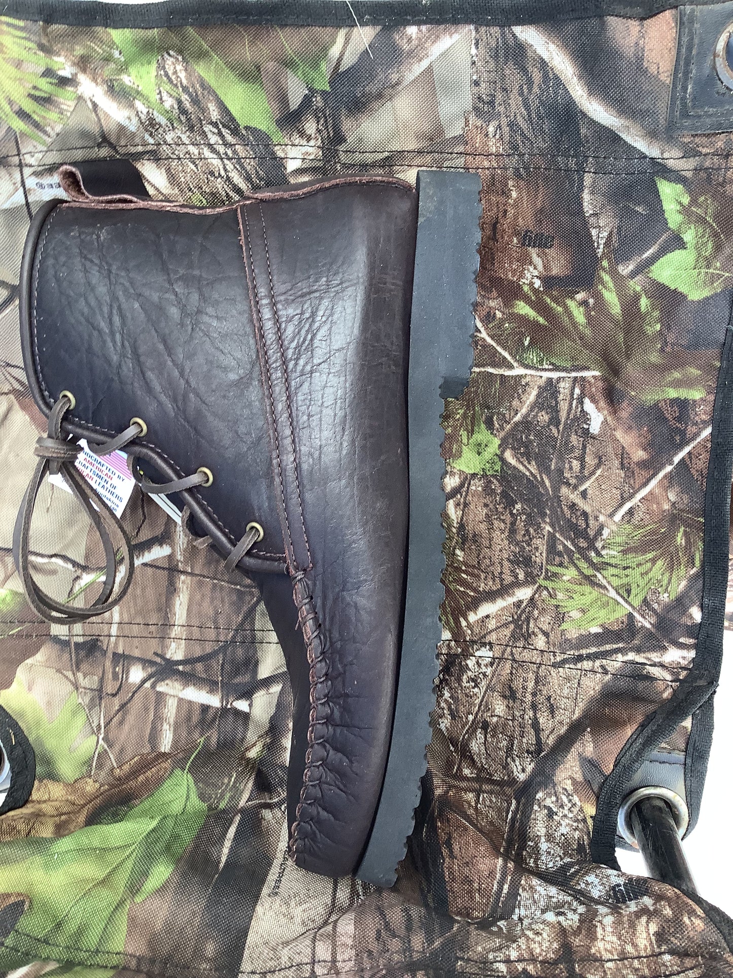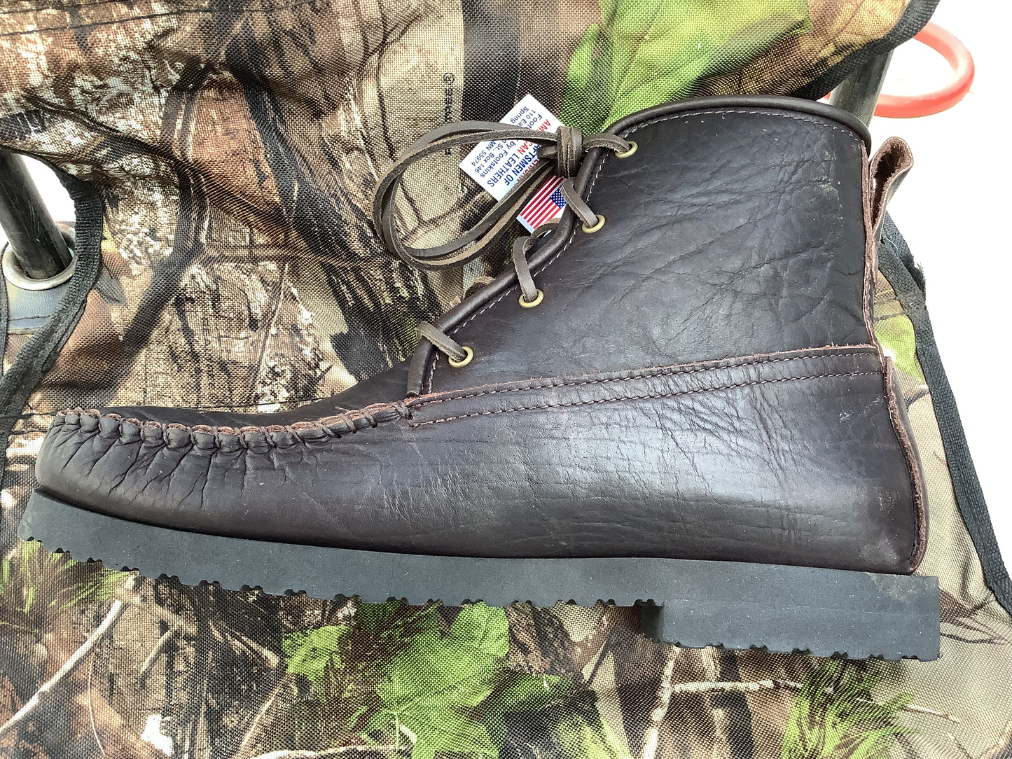 4 eyelet;  7" tall;  hand whipped external toe seamFull two layers of bison, so it is both bison outside and bison lined (but the lining is a bit thinner and more conforming than the outer layer. Neolite out-sole, Sorbathane insole, leather lacing.