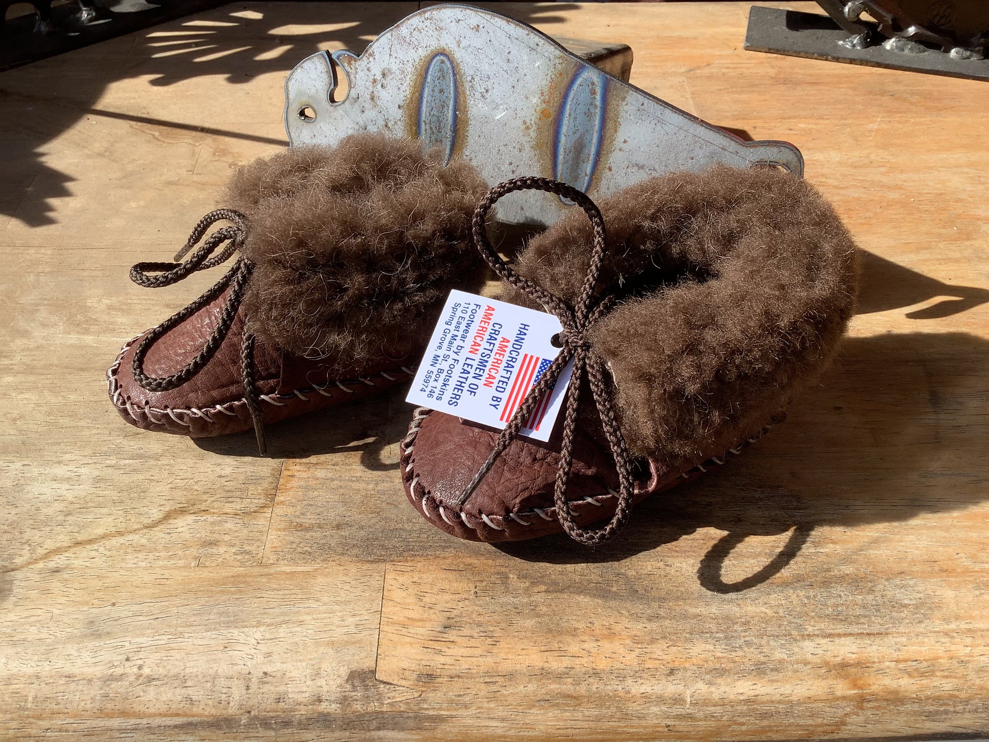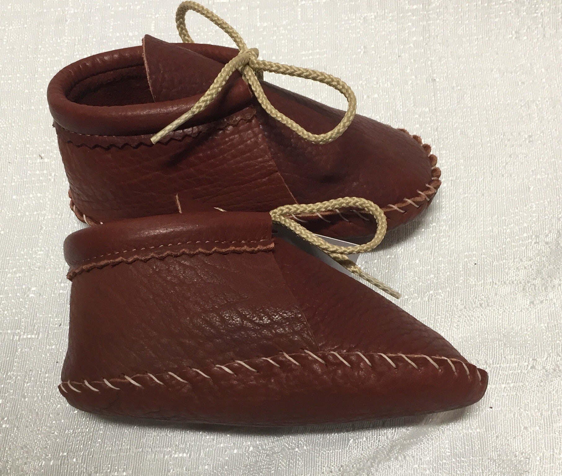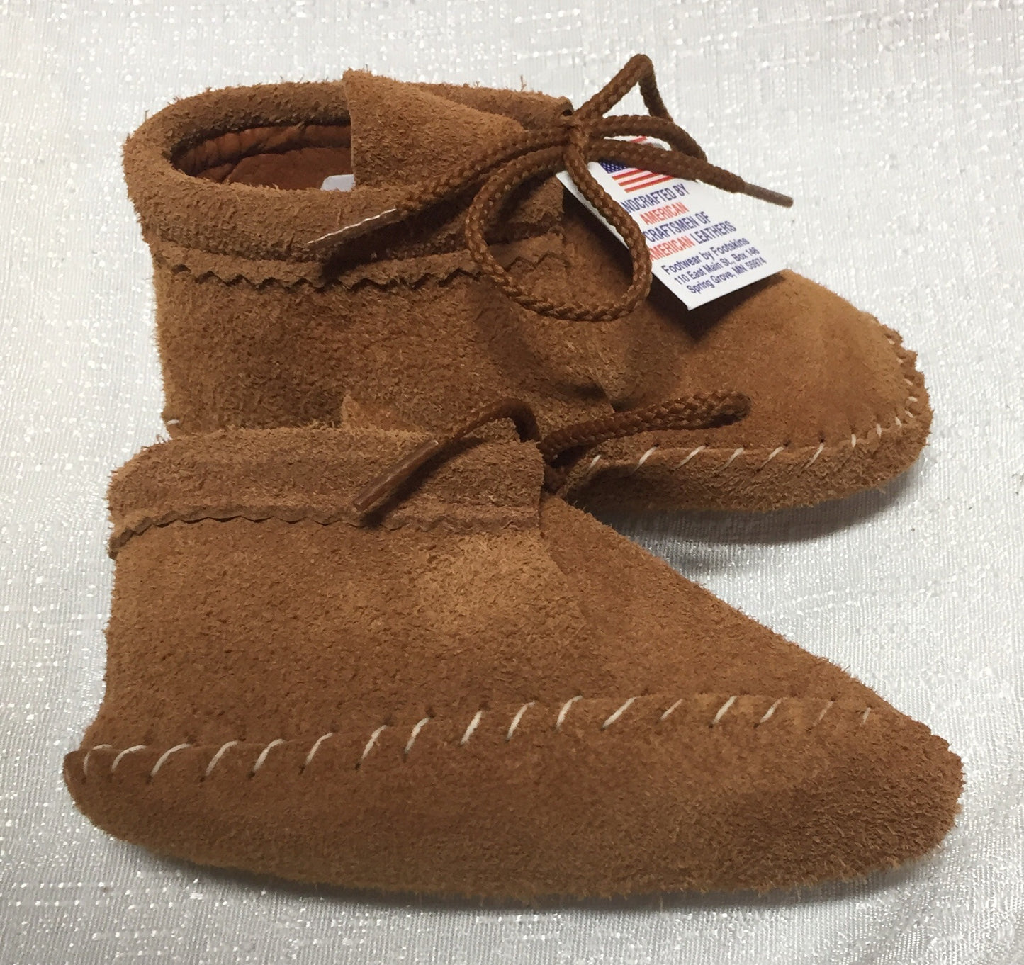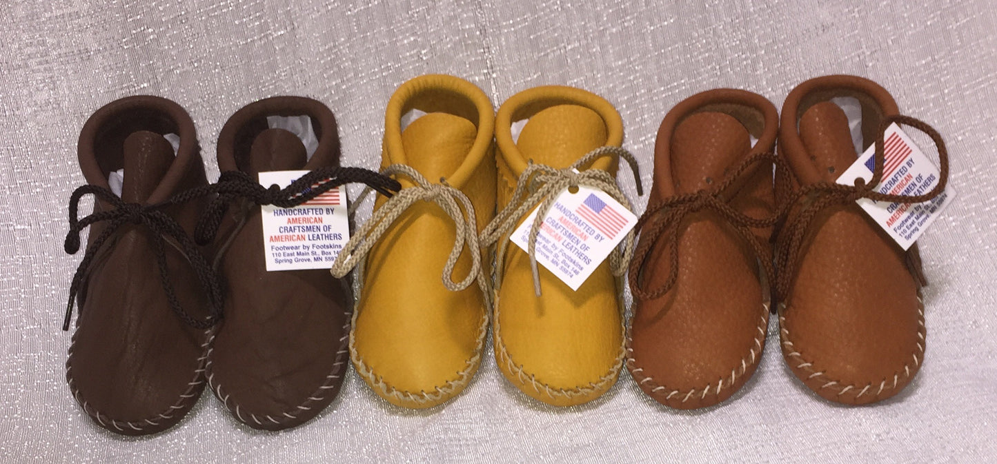 All Infant and Toddler sizes are built in American tanned bison leather in tobacco, gold, mahogany and chocolate. These little gems are built to cradle the tiny feet, cushion their steps and give them just that little added support. These are not just good looking, they are practical footwear for your precious little one.