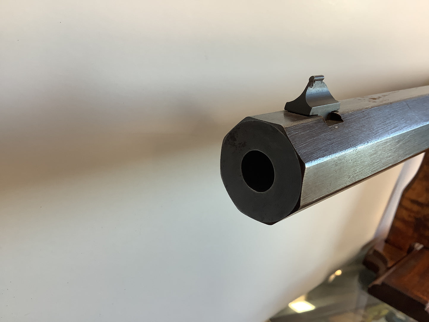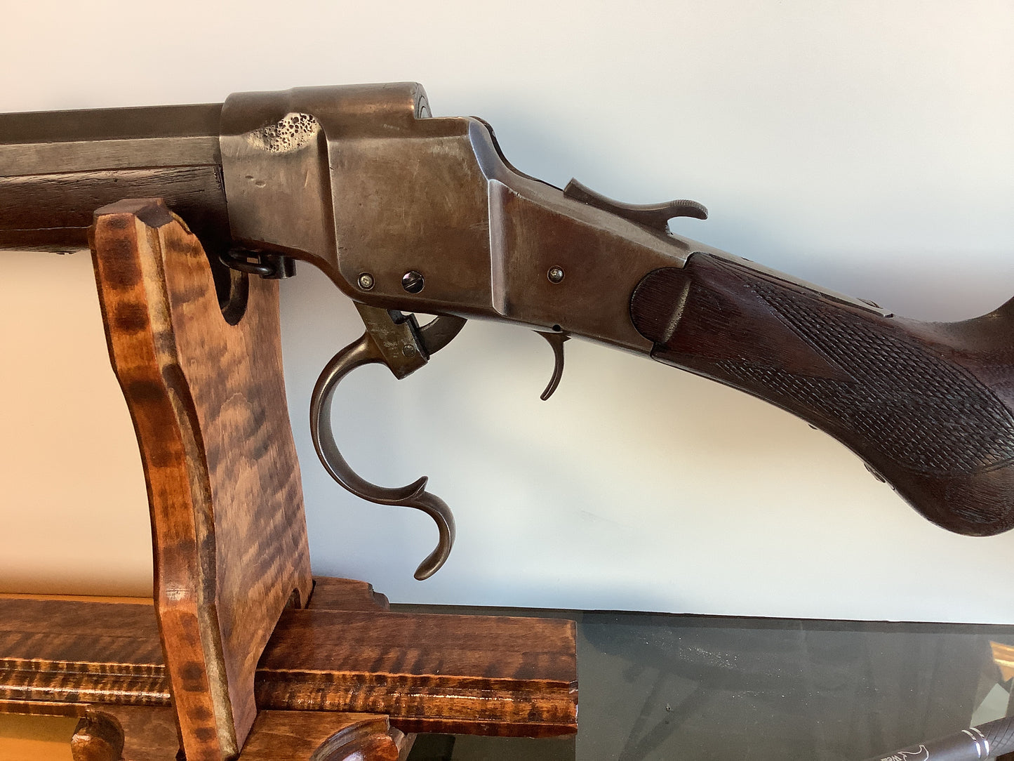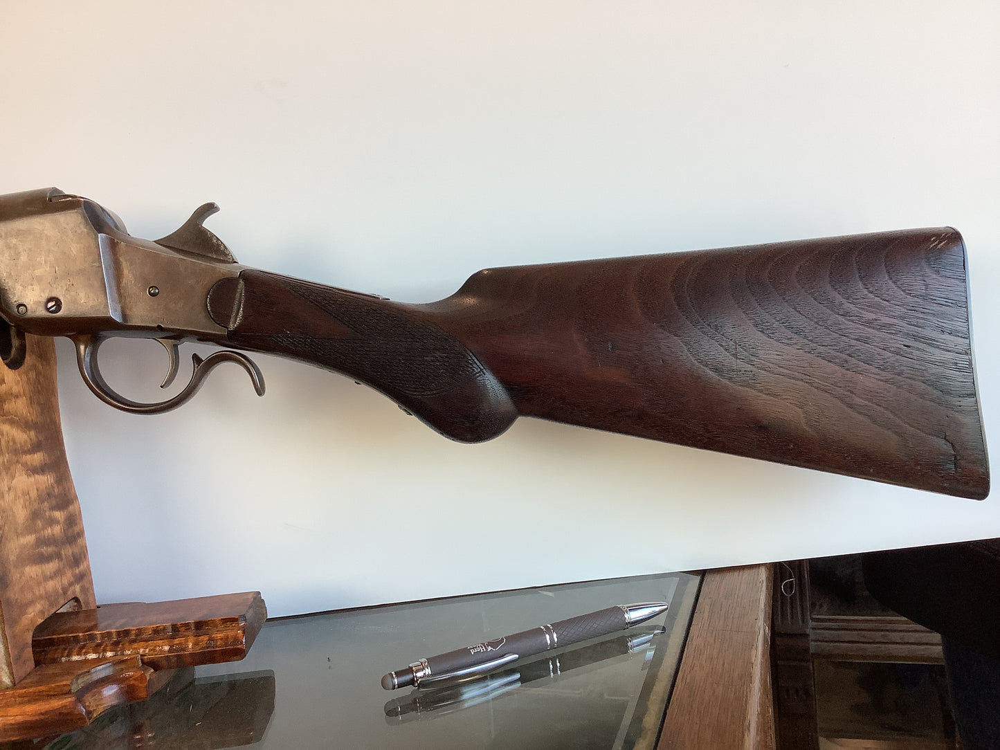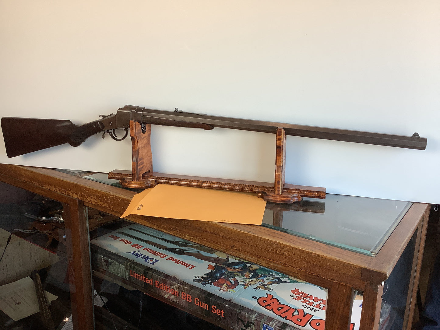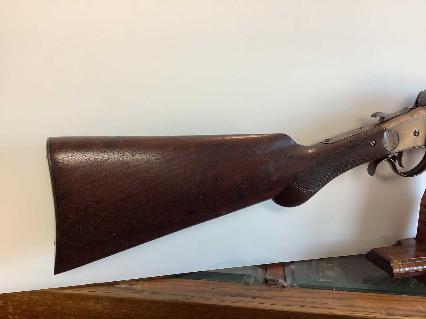 Hopkins & Allen was known mainly for their revolvers, but the firm did start manufacturing single shot rifles like this one in 1888. The company also produced several of both single shot and side-by-side shotguns. Their Falling Block were chambered in a variety of calibers. Its single shot action would have been great to teach a young lad the importance of making every shot count! This one features an octagonal barrel.