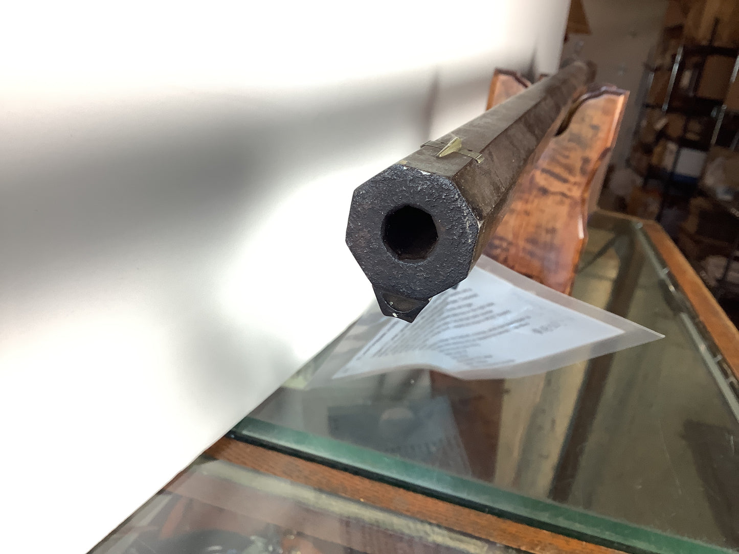Measuring in at the bore, 10.90mm with a single round capacity and a 38” octagon barrel. Contoured engraved metal butt plate.