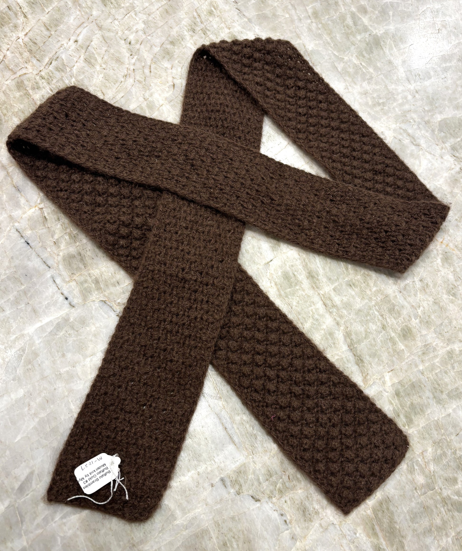 Hand Knit - "Buffalo Brambles long/narrow bison down scarf