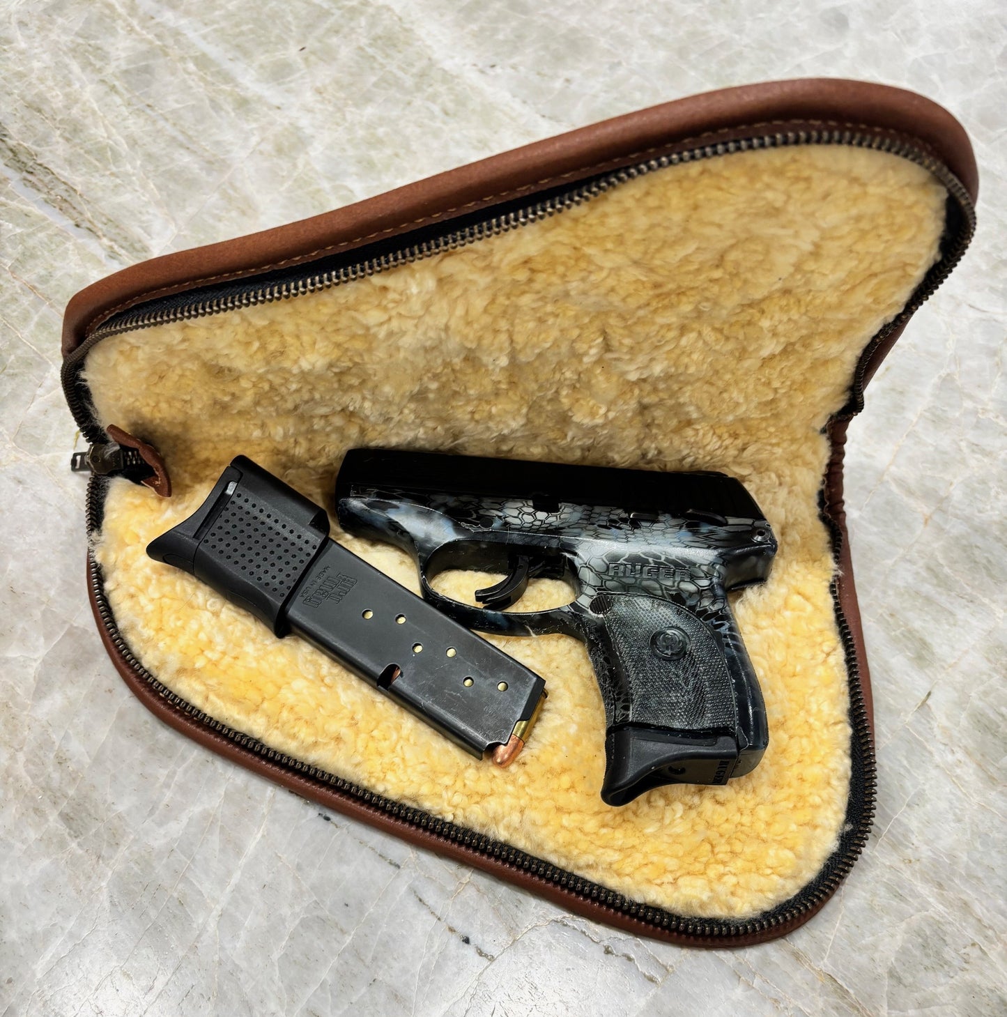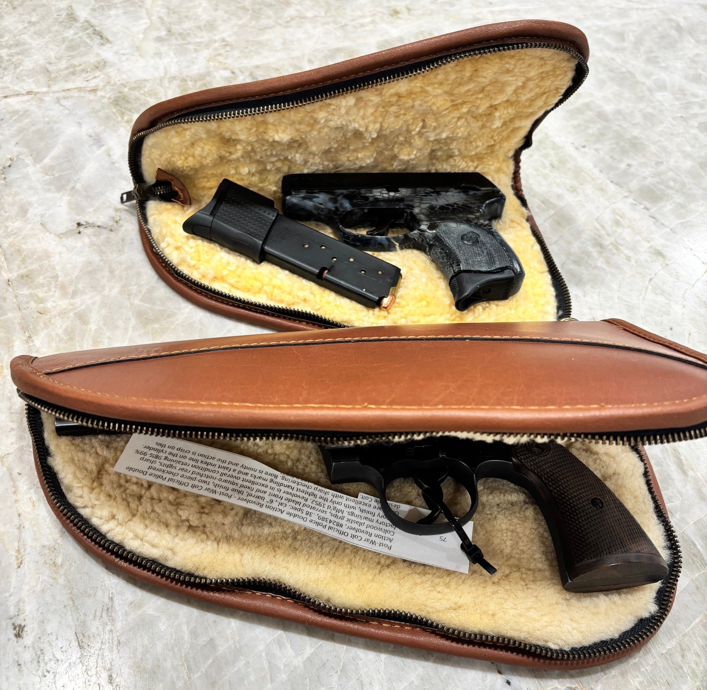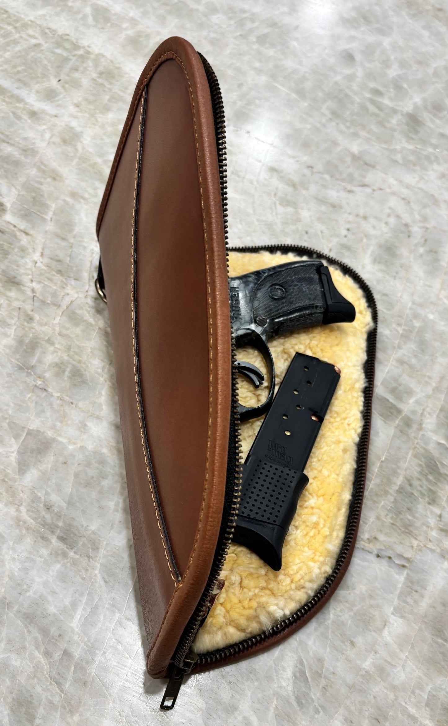 These will blow away almost any other shotgun case or pistol rug.  The shotgun and pistol cases are made with exceptional leather, lined with a thick natural (undyed and unbleached!) sheepskin shearling that is known for moisture wicking.  Yes, they are made overseas (Pakistan) but then so will be many of the guns that get to live in them.